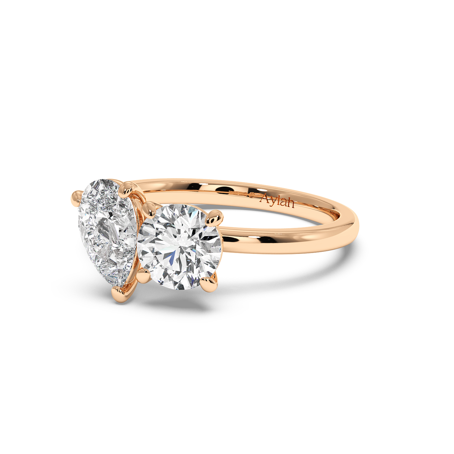 Round & Pear in V-claw basket setting, Floating Head