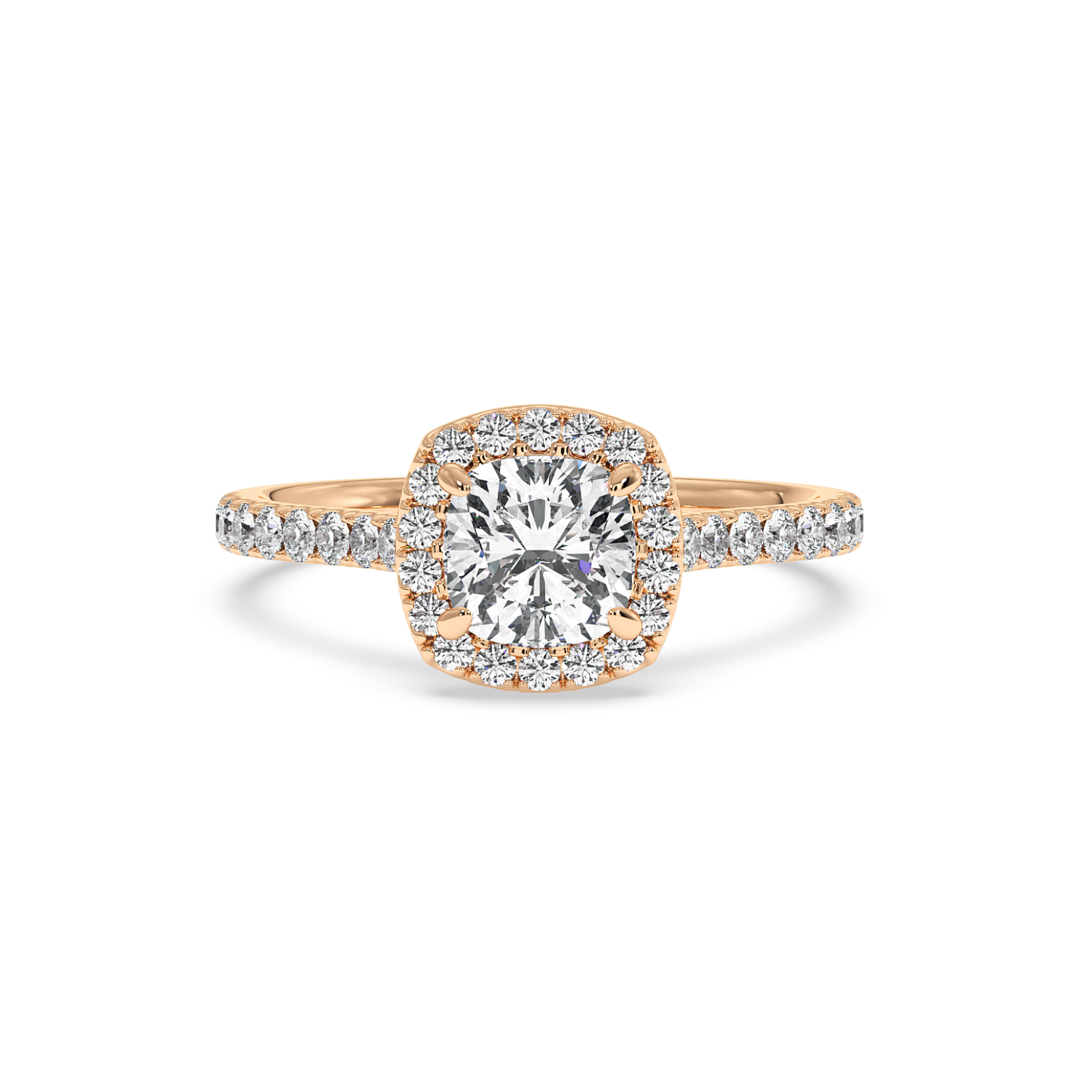 Cushion Cut Diamond with Classic Halo & Micro Set Shoulder Diamonds