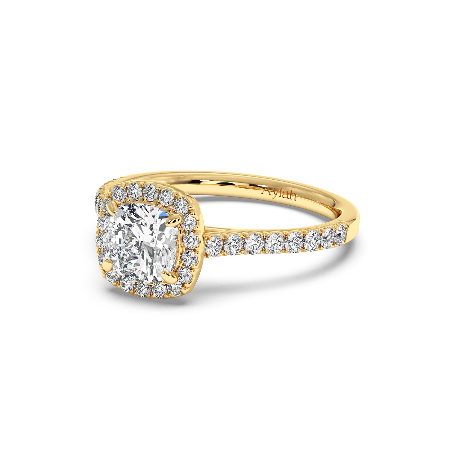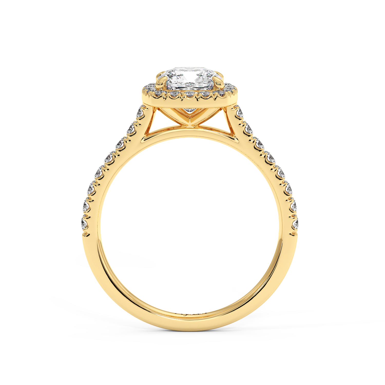 Cushion Cut Diamond with Classic Halo & Micro Set Shoulder Diamonds