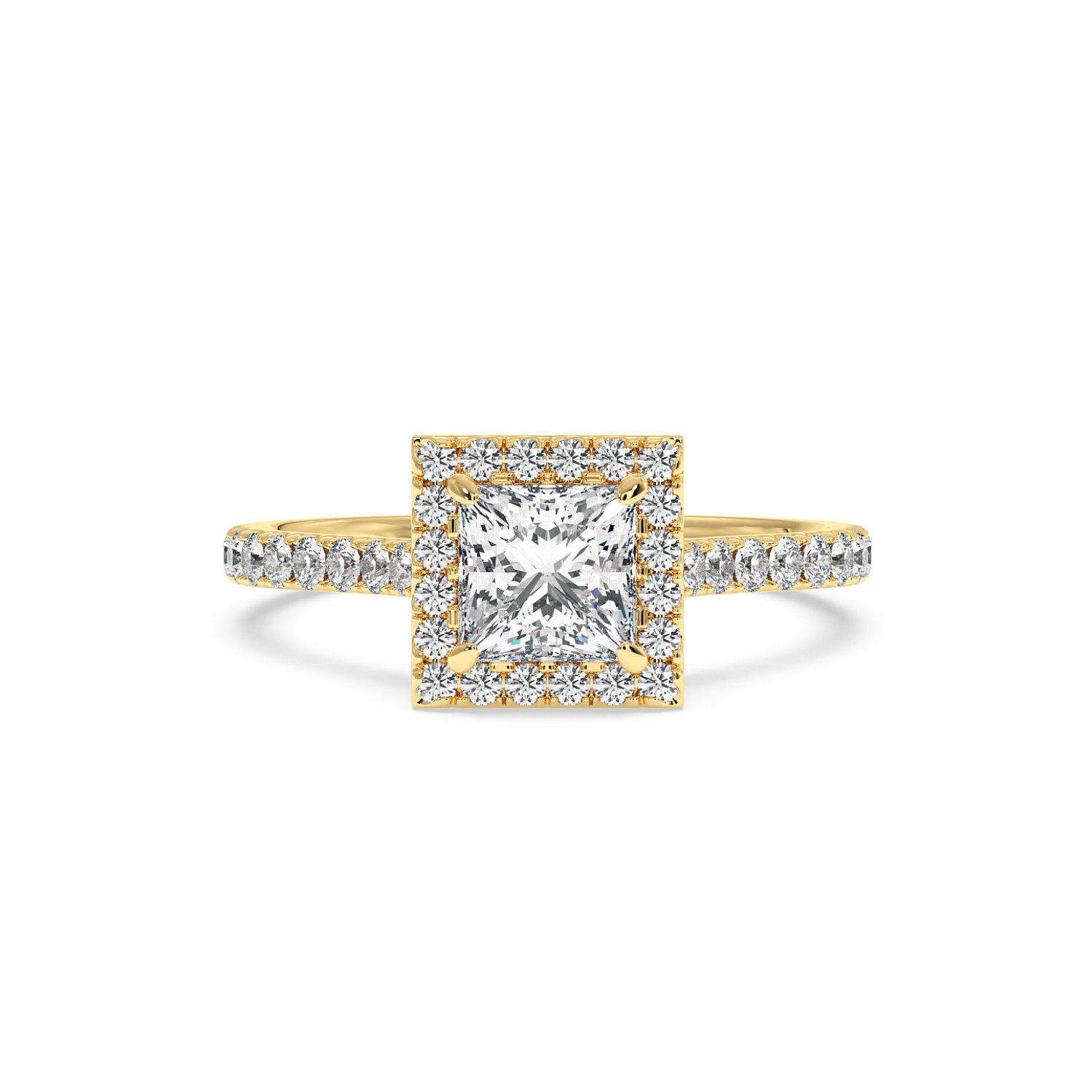 Princess Cut Diamond with Classic Halo & Micro Set Shoulder Diamonds