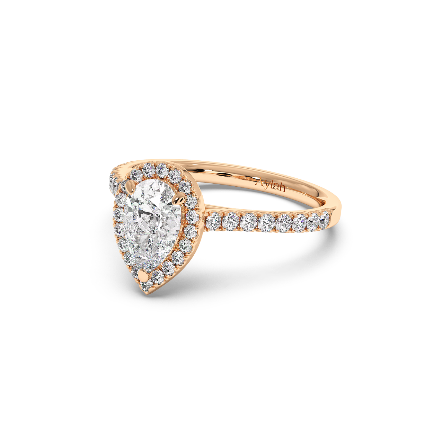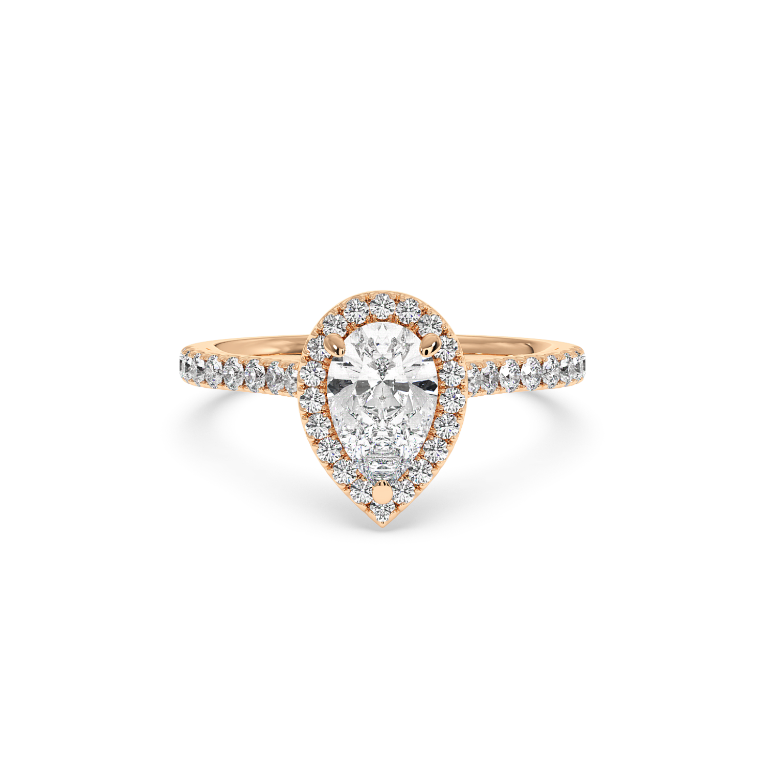 Pear Cut Diamond with Classic Halo & Micro Set Shoulder Diamonds