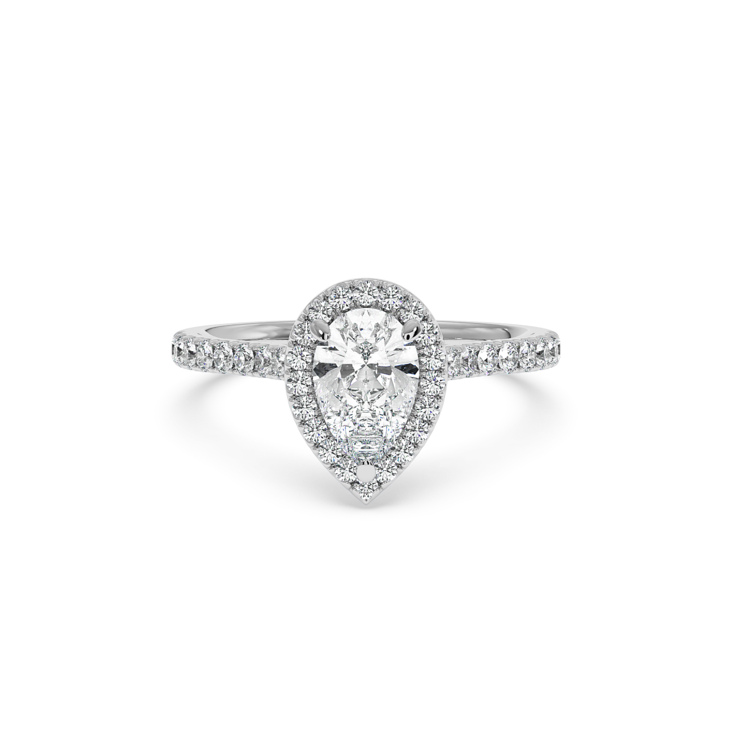 Pear Cut Diamond with Classic Halo & Micro Set Shoulder Diamonds