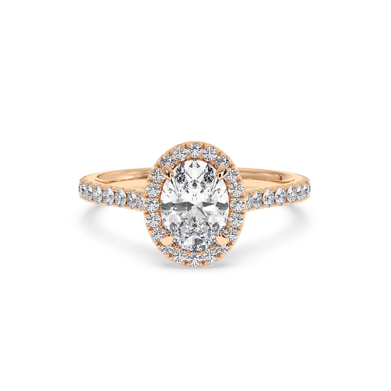 Oval Cut Diamond with Classic Halo & Micro Set Shoulder Diamonds