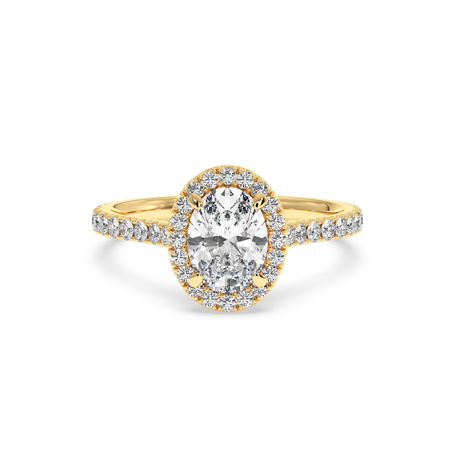 Oval Cut Diamond with Classic Halo & Micro Set Shoulder Diamonds