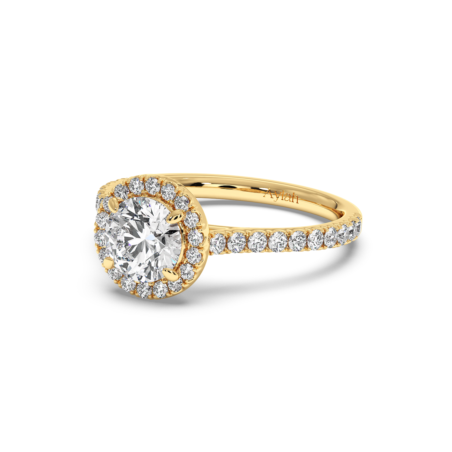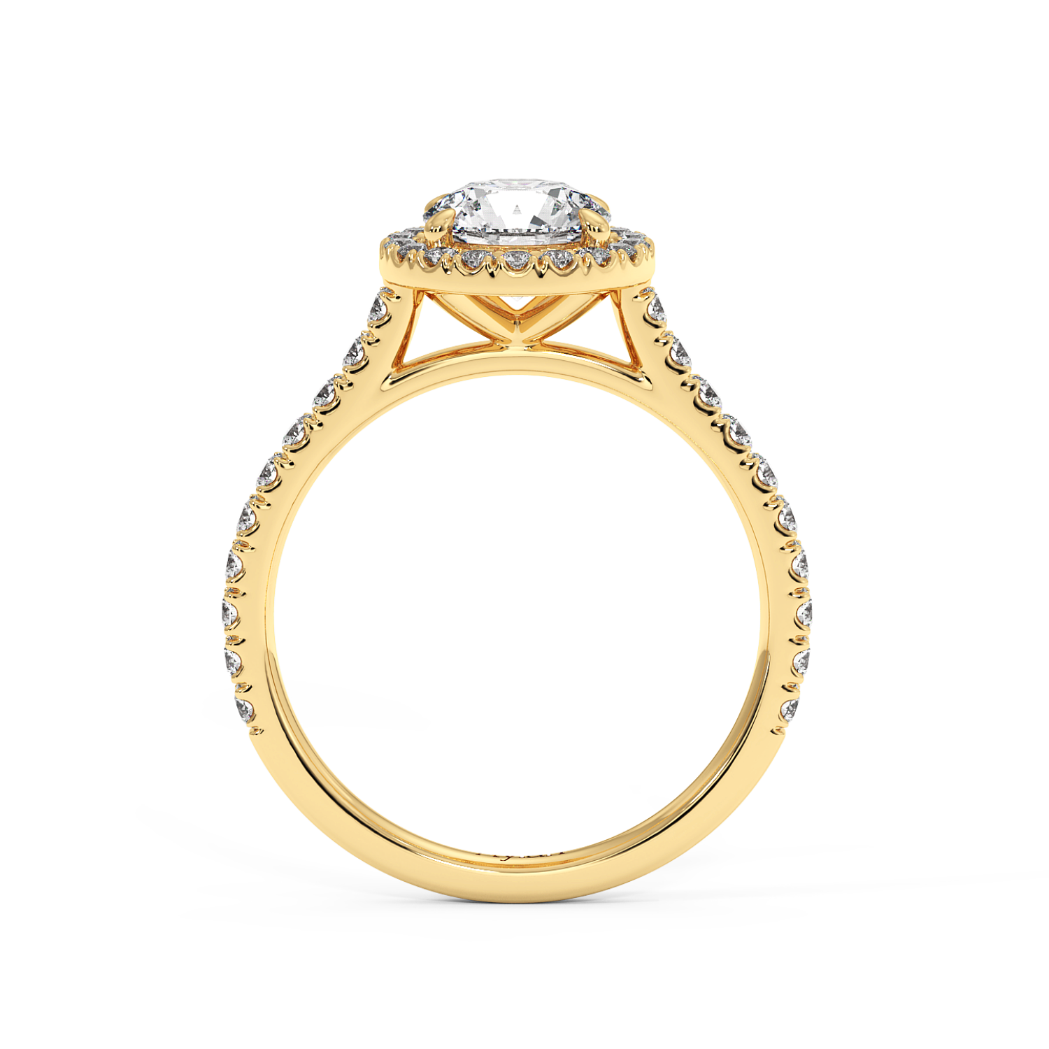 Round Cut Diamond with Classic Halo & Micro Set Shoulder Diamonds