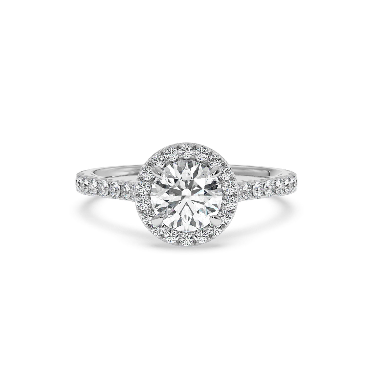 Round Cut Diamond with Classic Halo & Micro Set Shoulder Diamonds