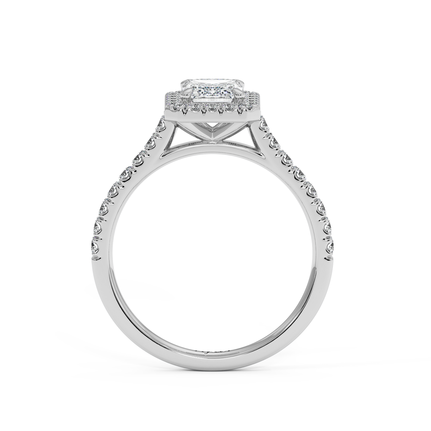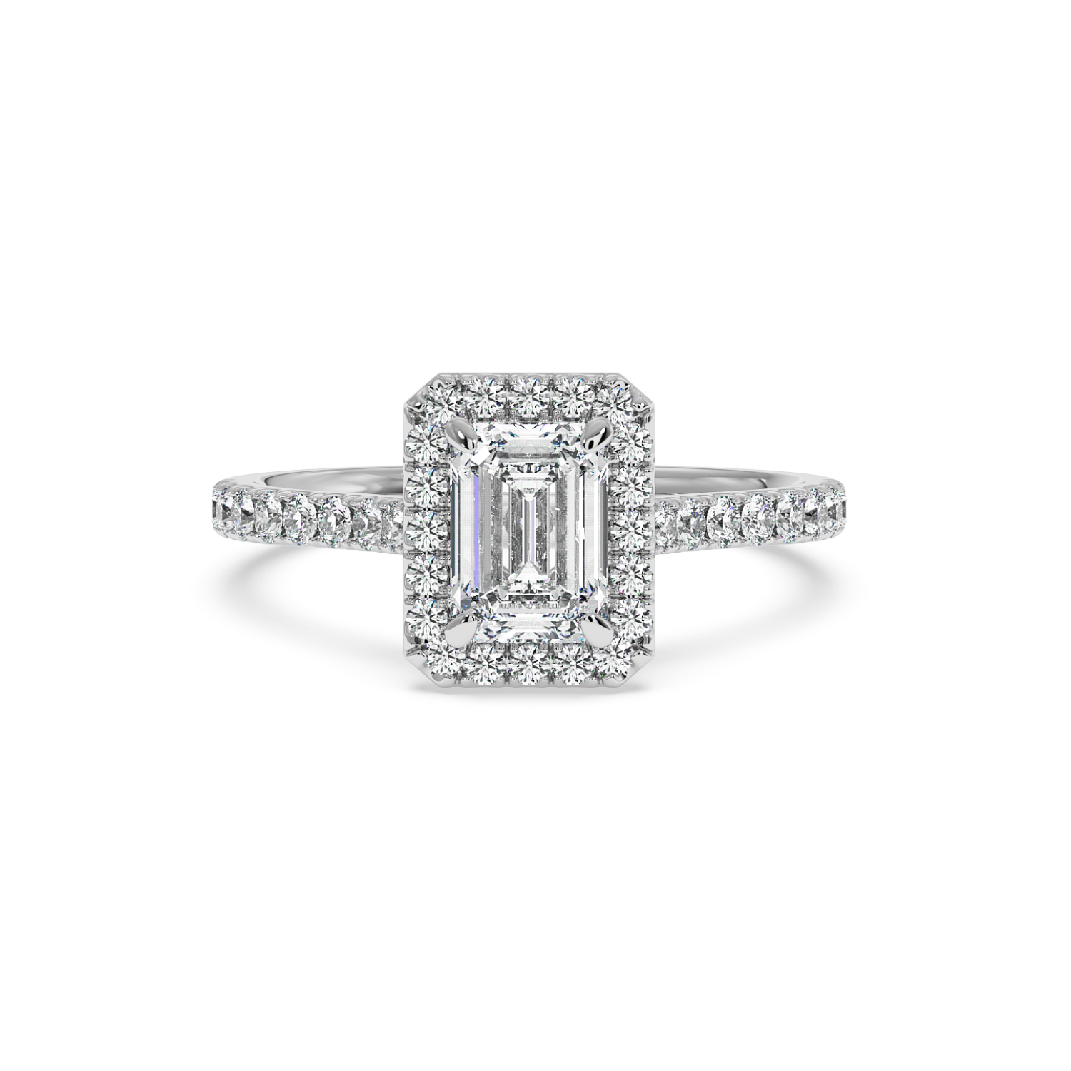 Emerald Cut Diamond with Classic Halo & Micro Set Shoulder Diamonds