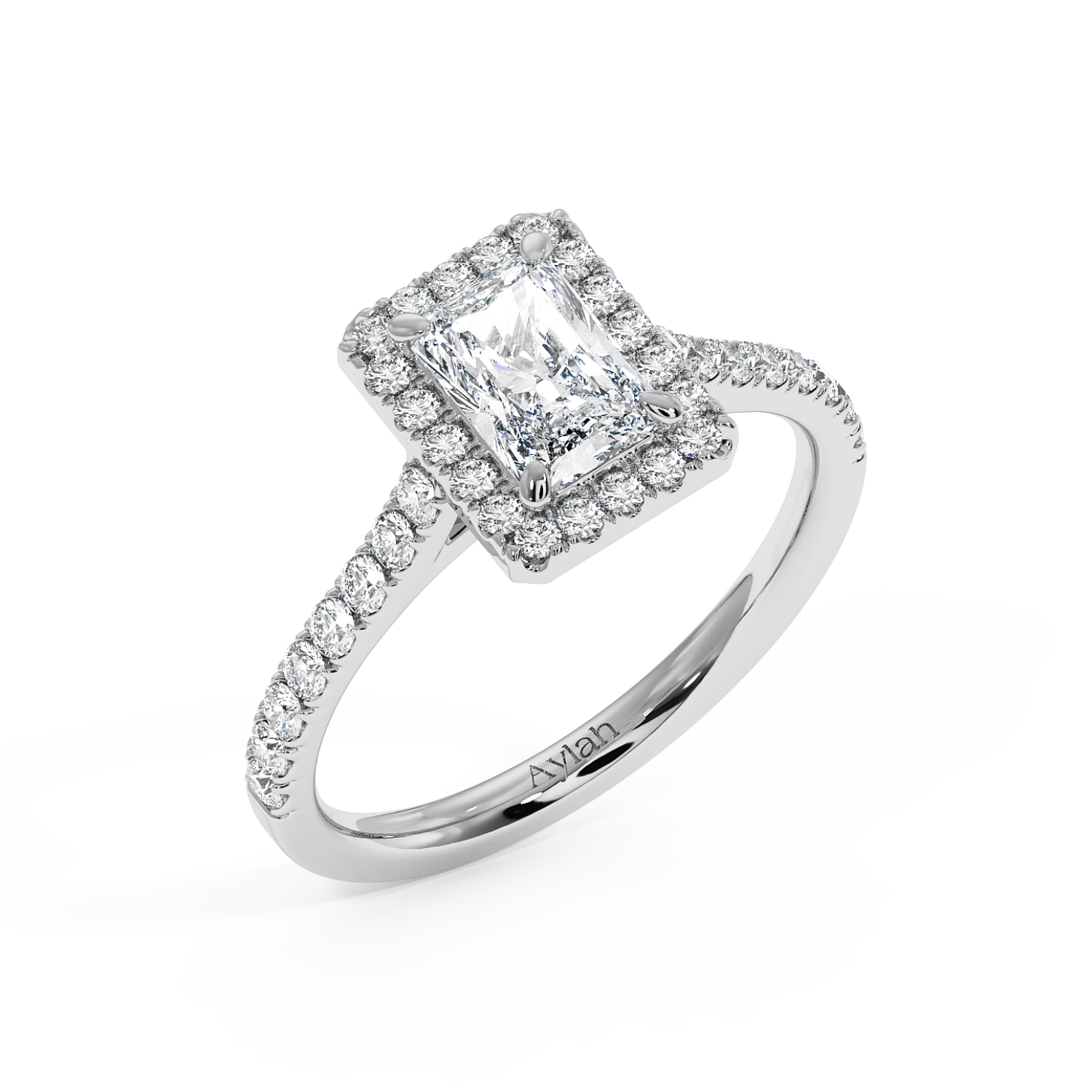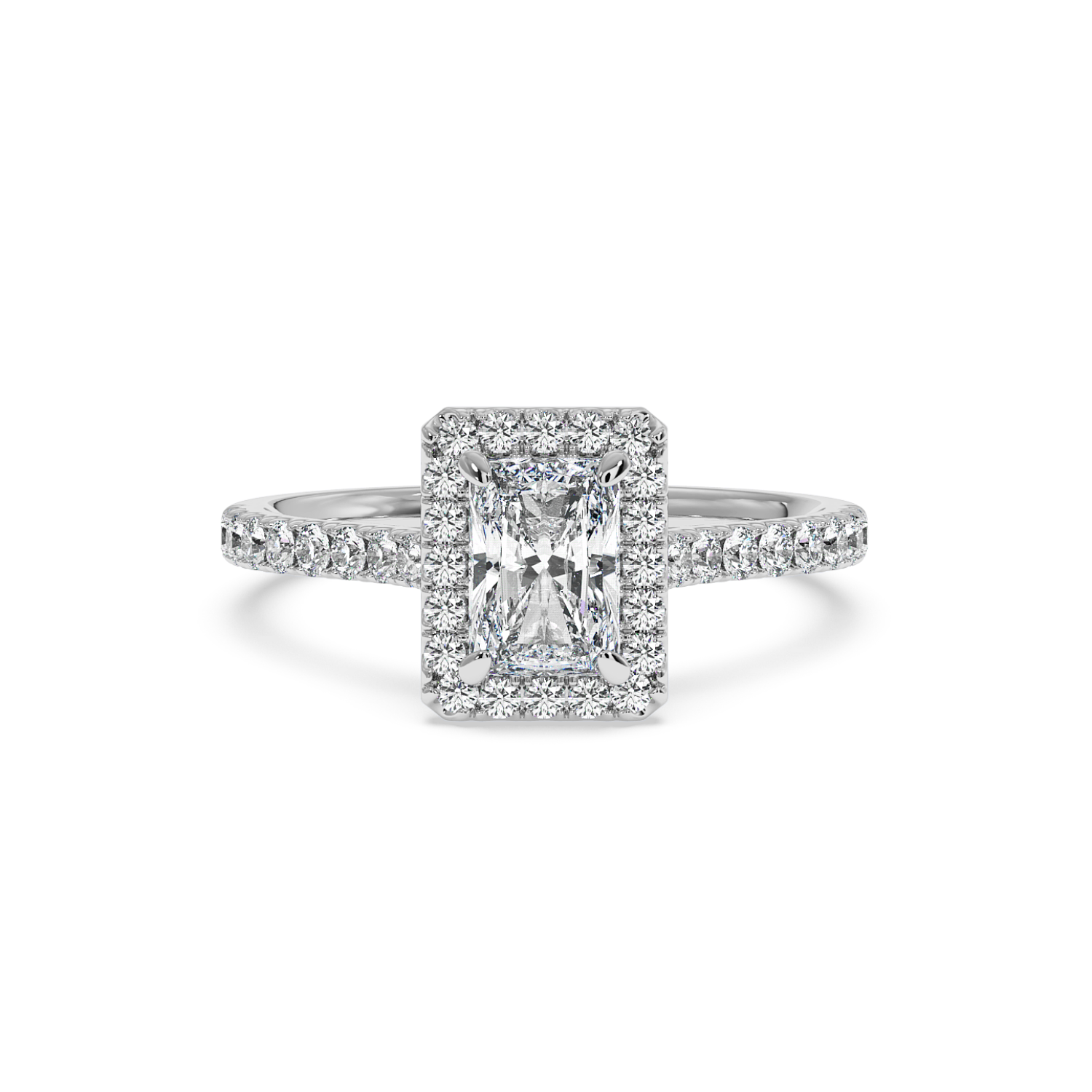 Radiant Cut Diamond with Classic Halo & MIcro Set Shoulder Diamonds