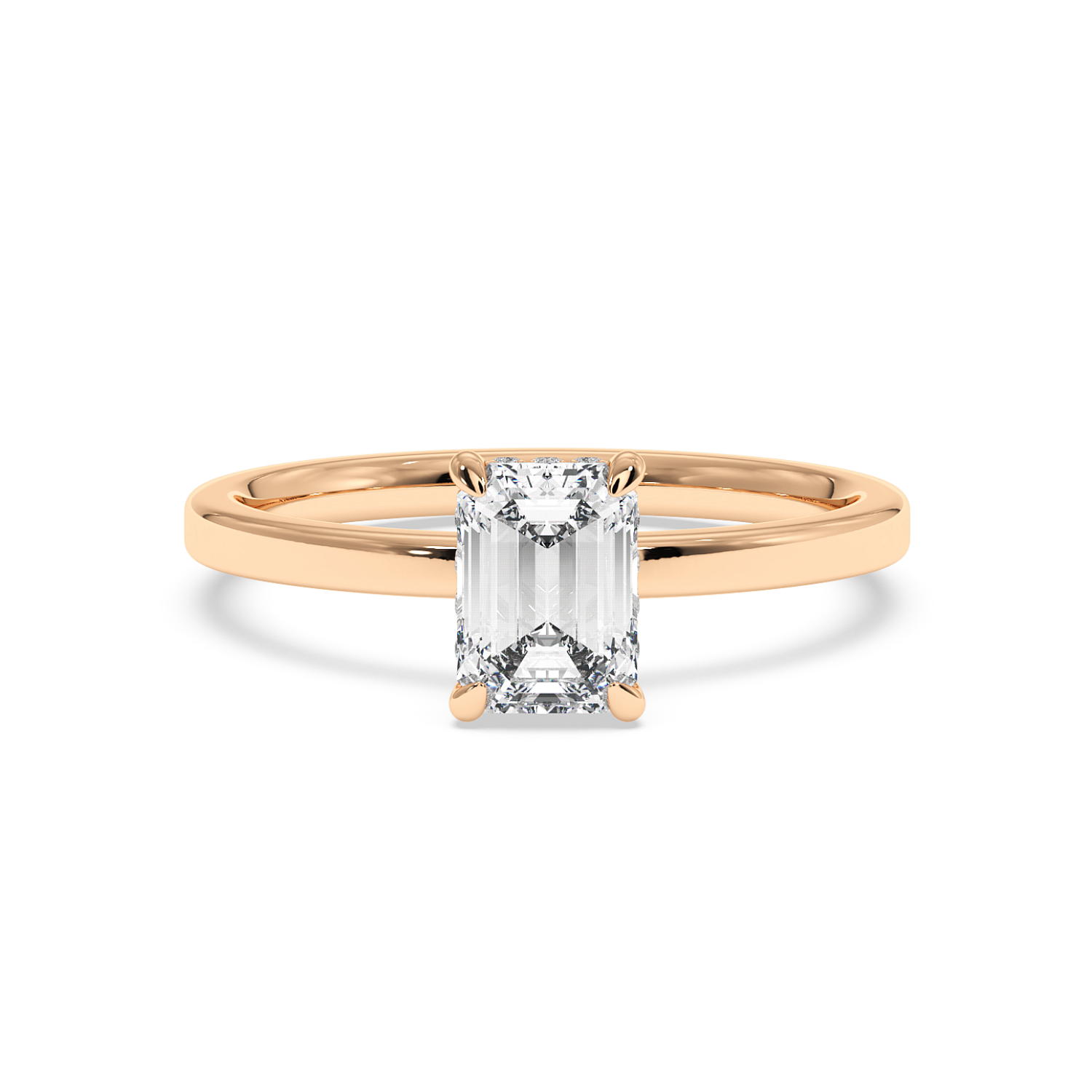 Four Claw Emerald Cut Ring with Hidden Halo