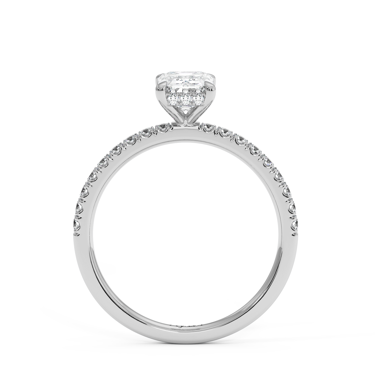 Four Claw Emerald Cut Ring with Hidden Halo & Side Diamonds