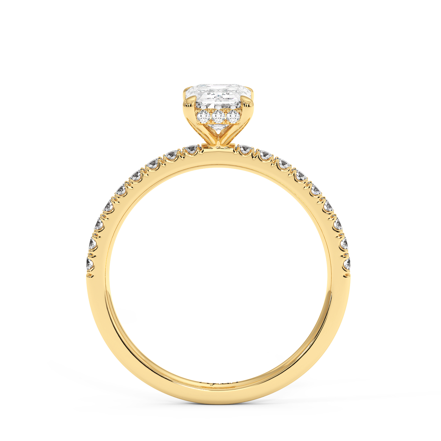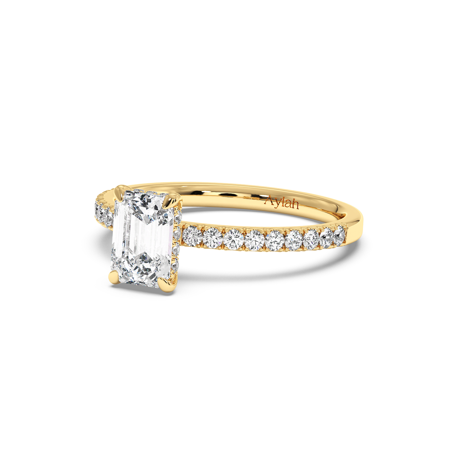Four Claw Emerald Cut Ring with Hidden Halo & Side Diamonds