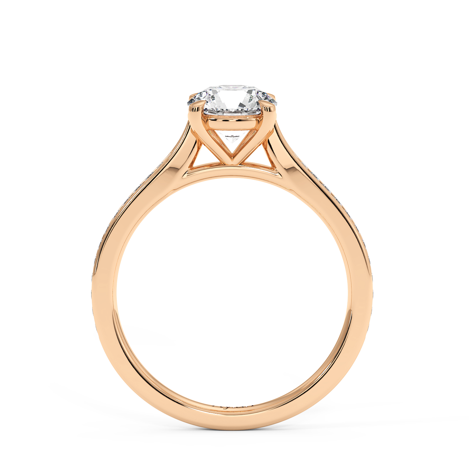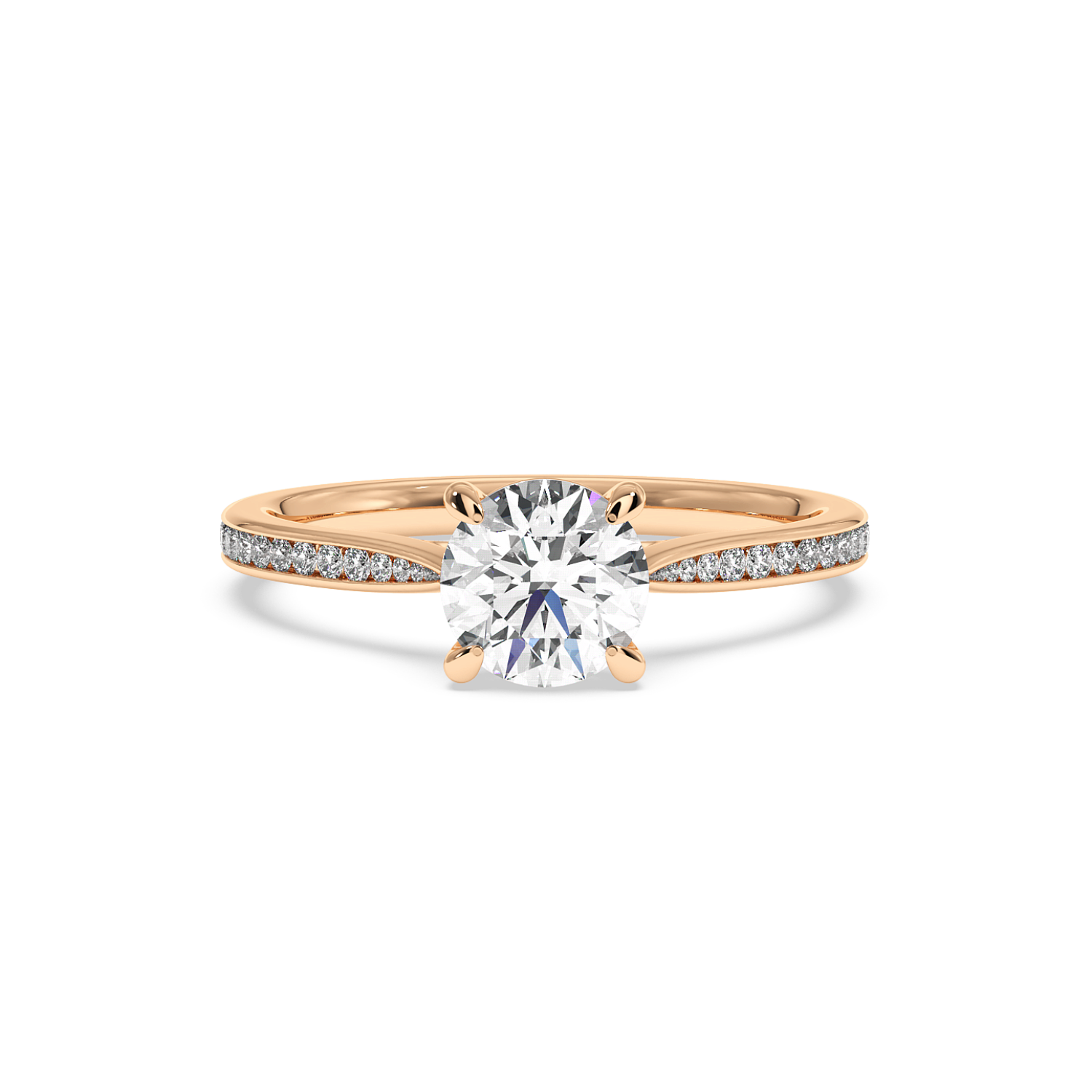 4 Claw Round Diamond Ring, With 60% Channel Set Shoulder Diamonds (Tapered Width)