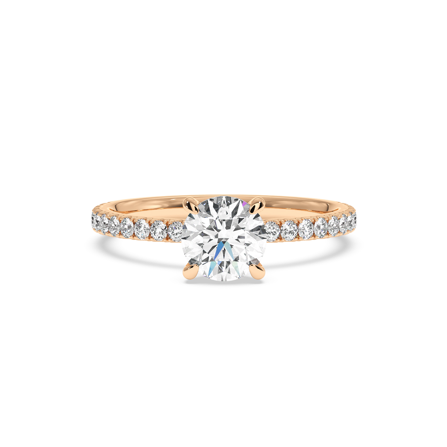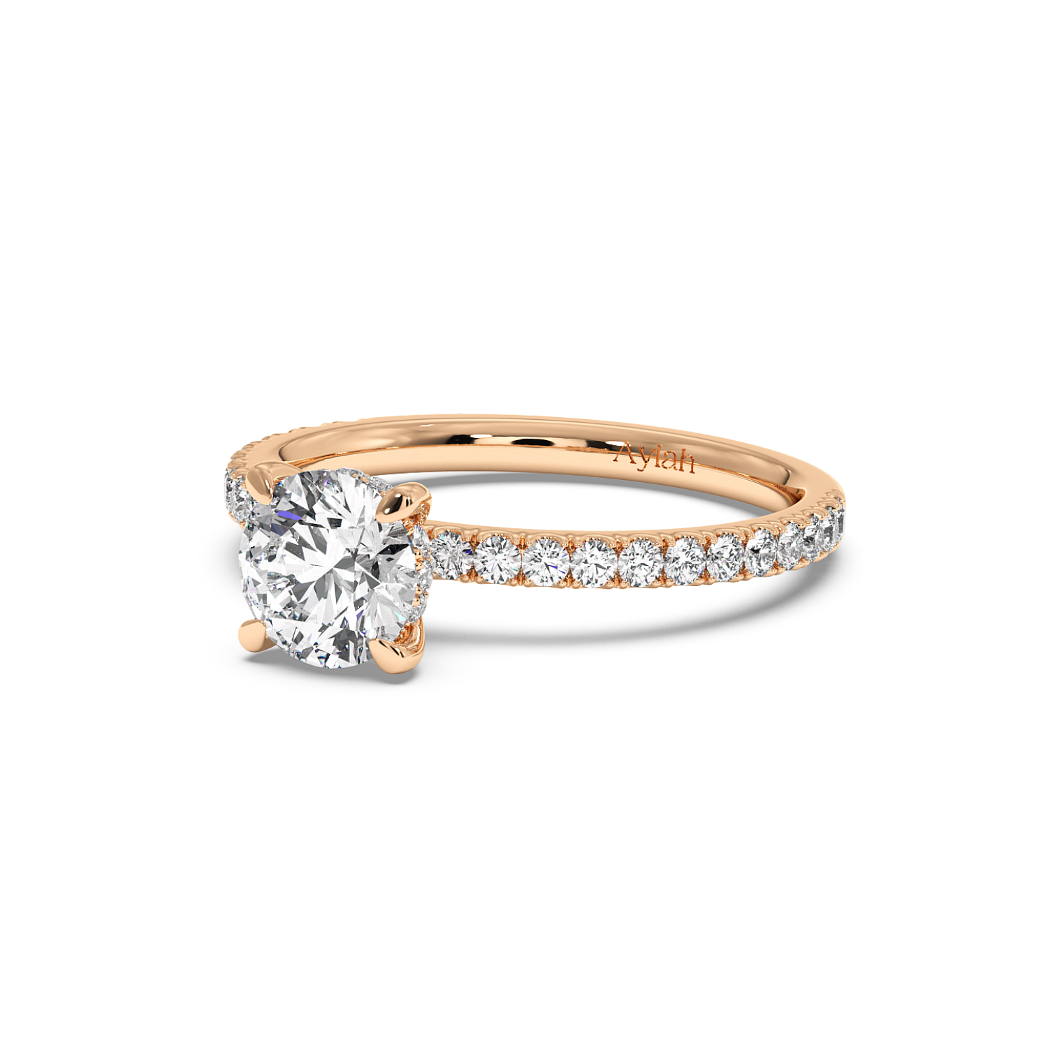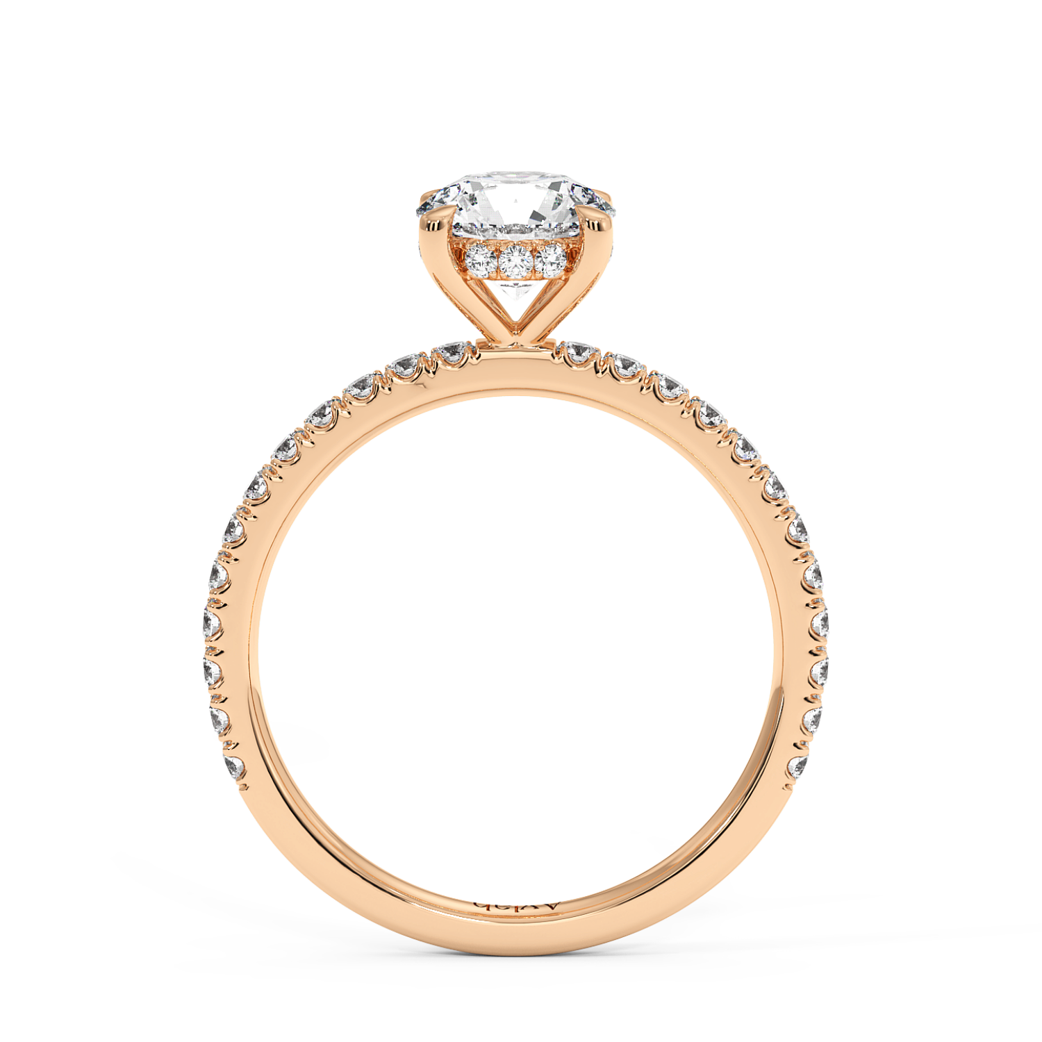 Four Claw Round Cut Ring with Hidden Halo & 60% Side Diamonds