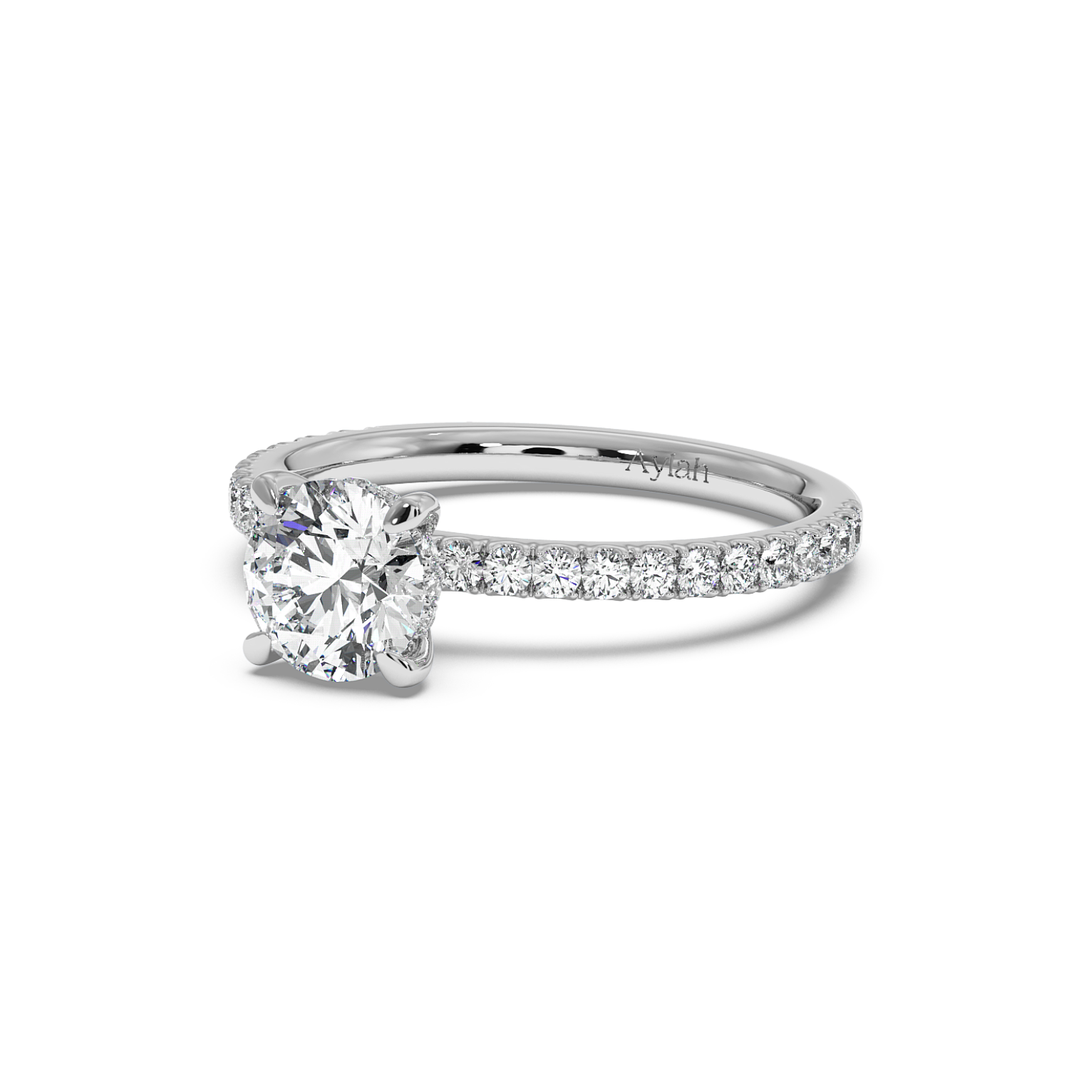 Four Claw Round Cut Ring with Hidden Halo & 60% Side Diamonds