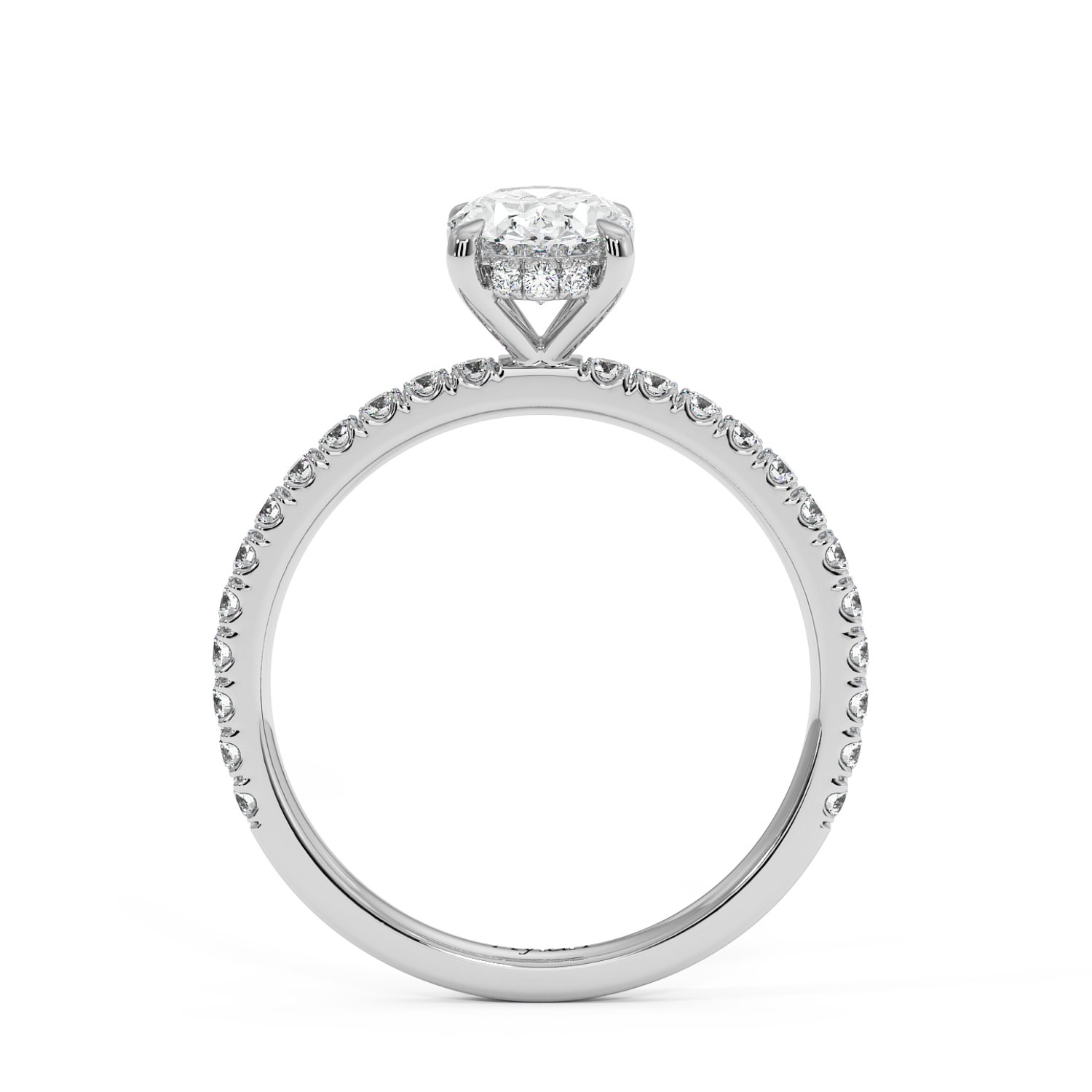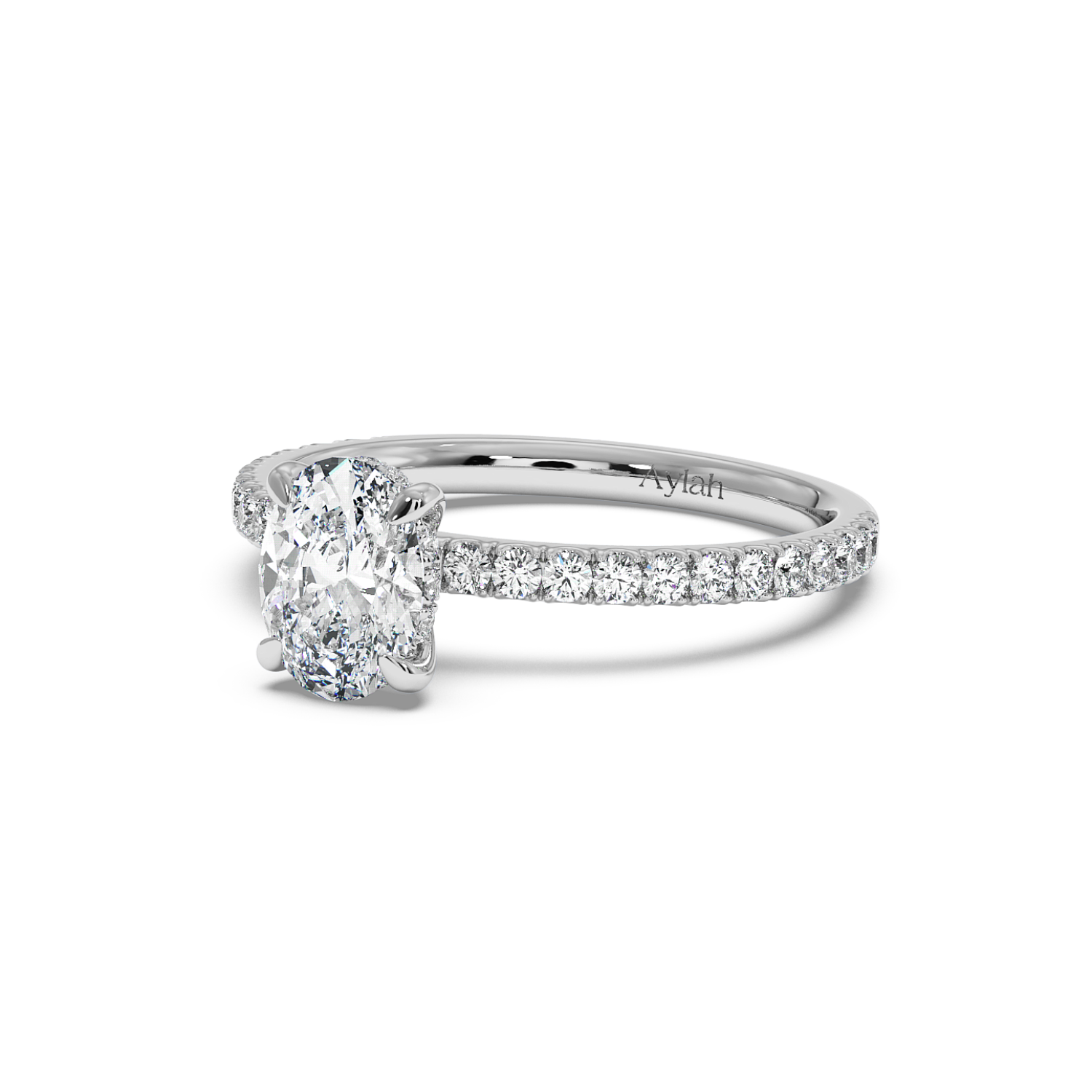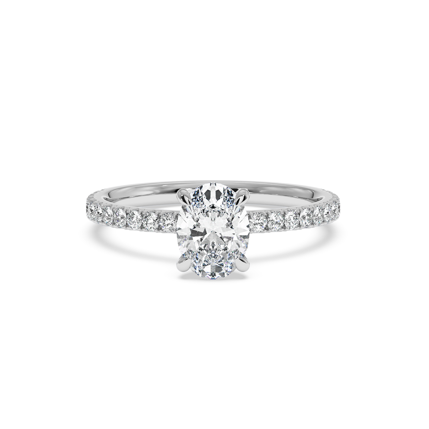 Four Claw Oval Cut Ring with Hidden Halo & 60% Side Diamonds