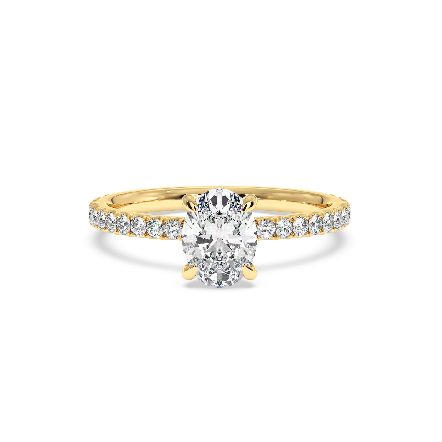Four Claw Oval Cut Ring with Hidden Halo & 60% Side Diamonds