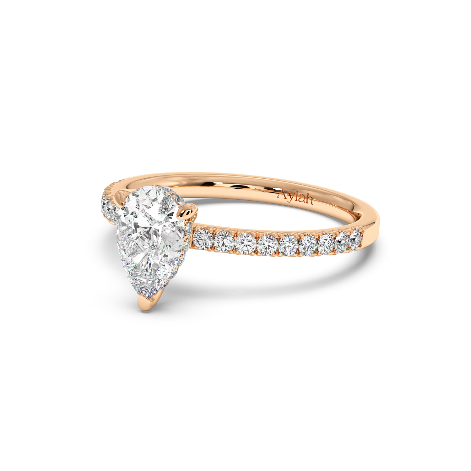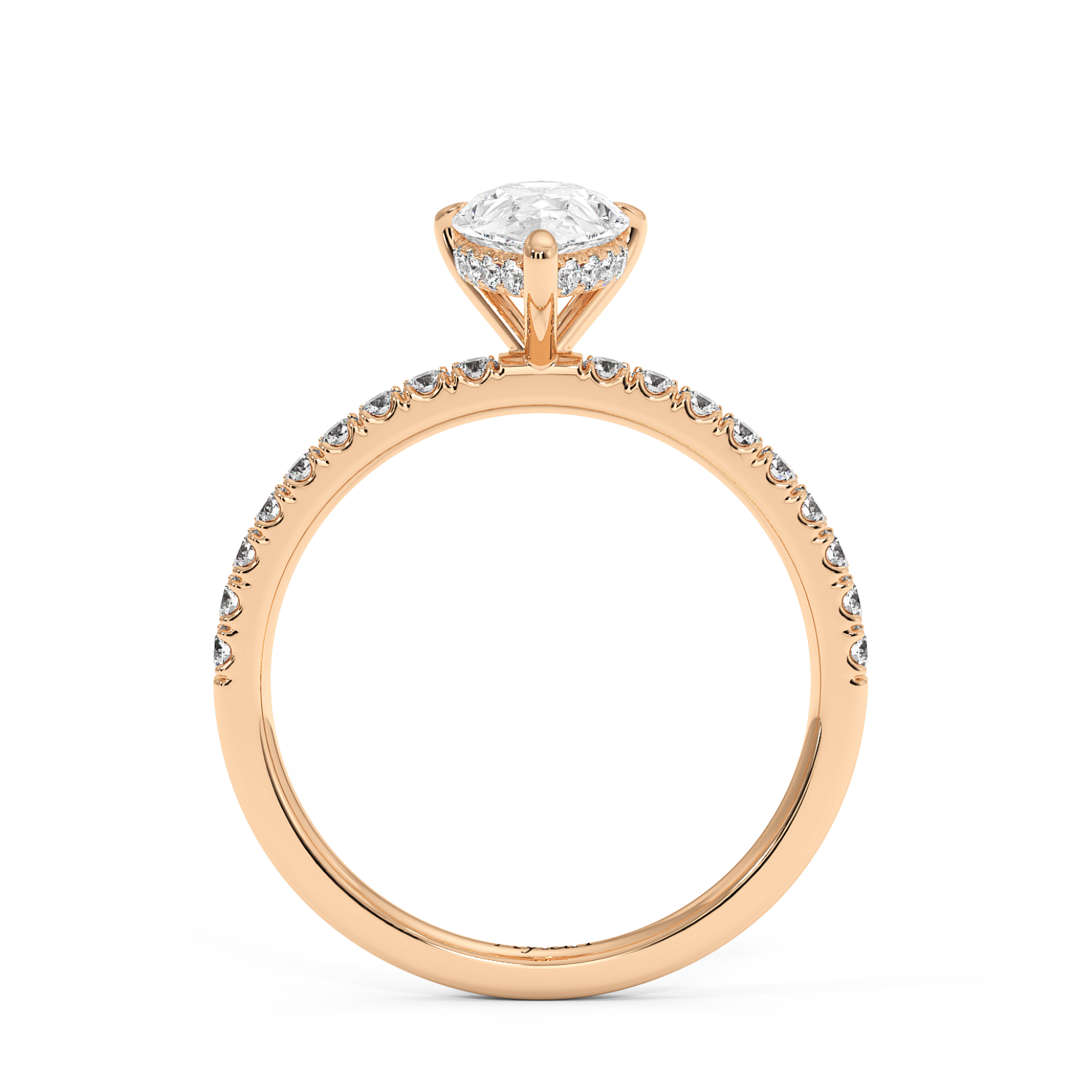 Four Claw Pear Cut Ring with Hidden Halo & Side Diamonds