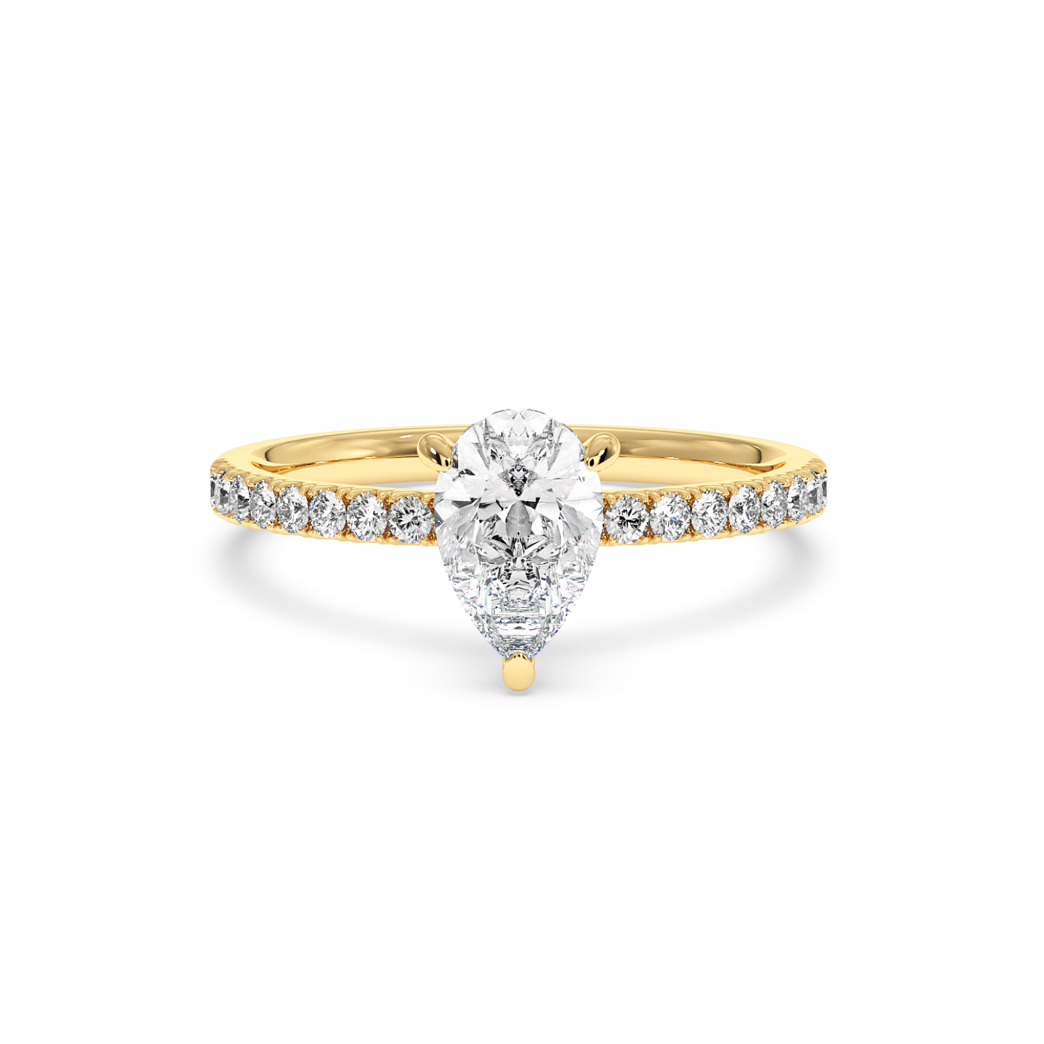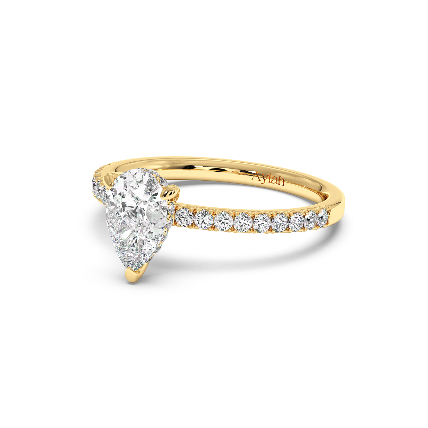 Four Claw Pear Cut Ring with Hidden Halo & Side Diamonds