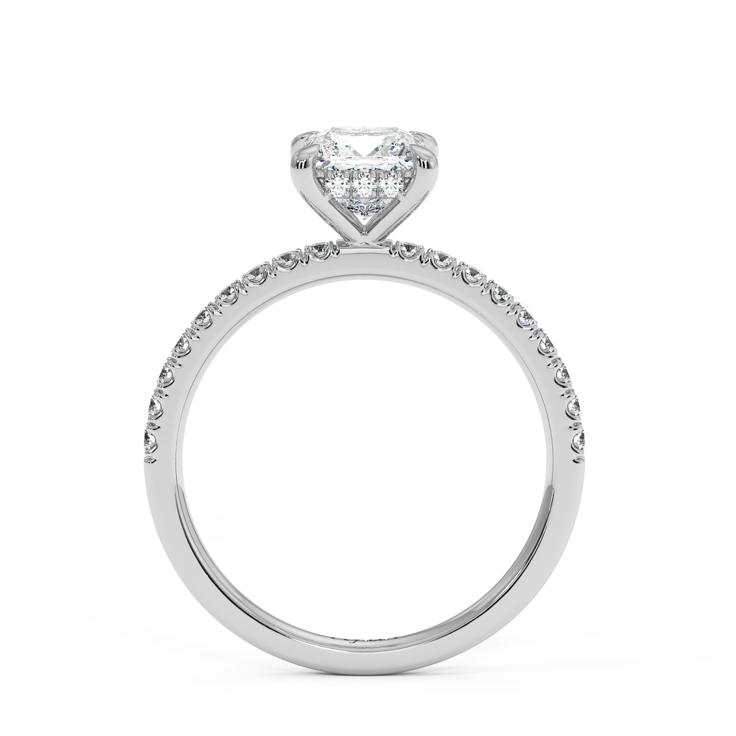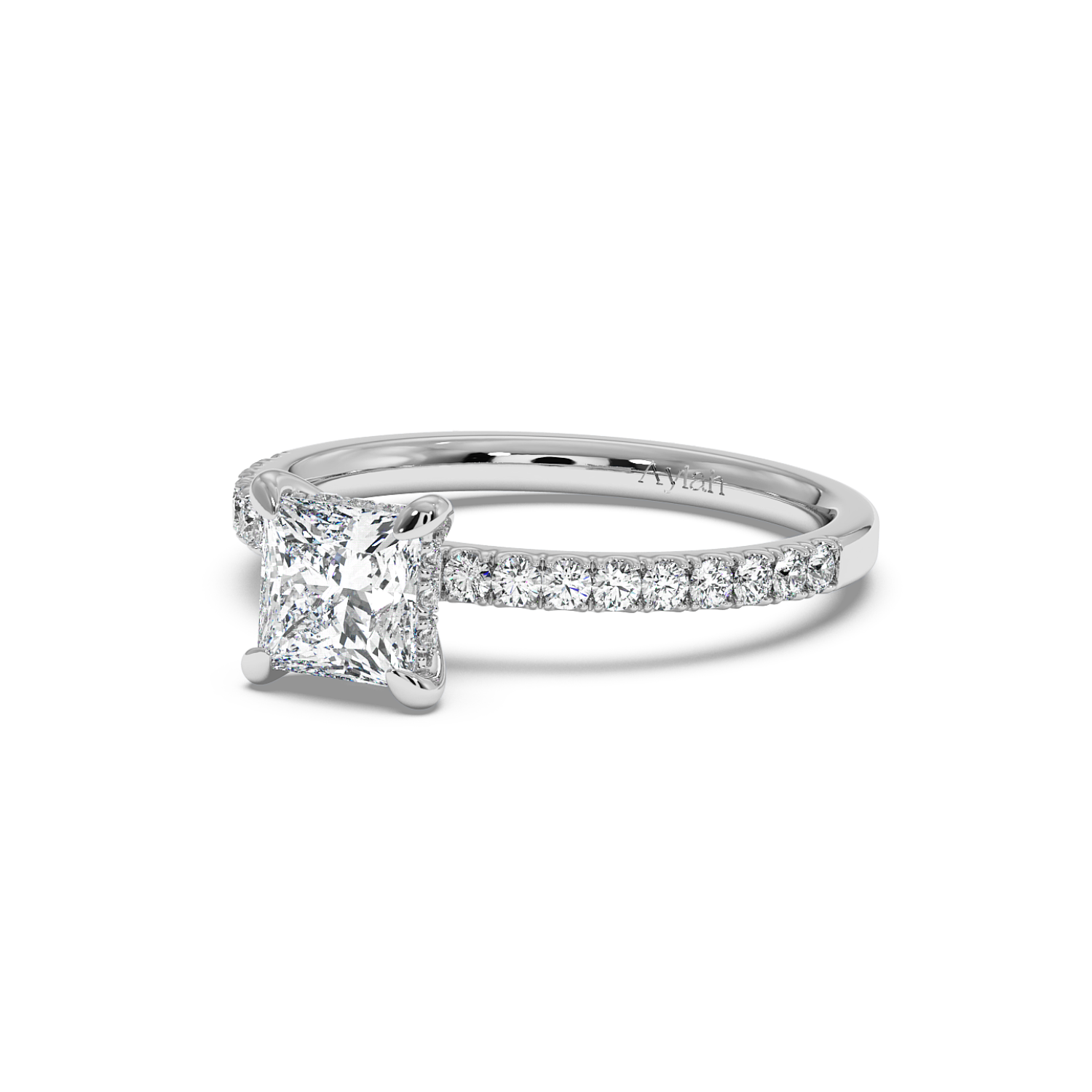 Four Claw Princess Cut Ring with Hidden Halo & Side Diamonds