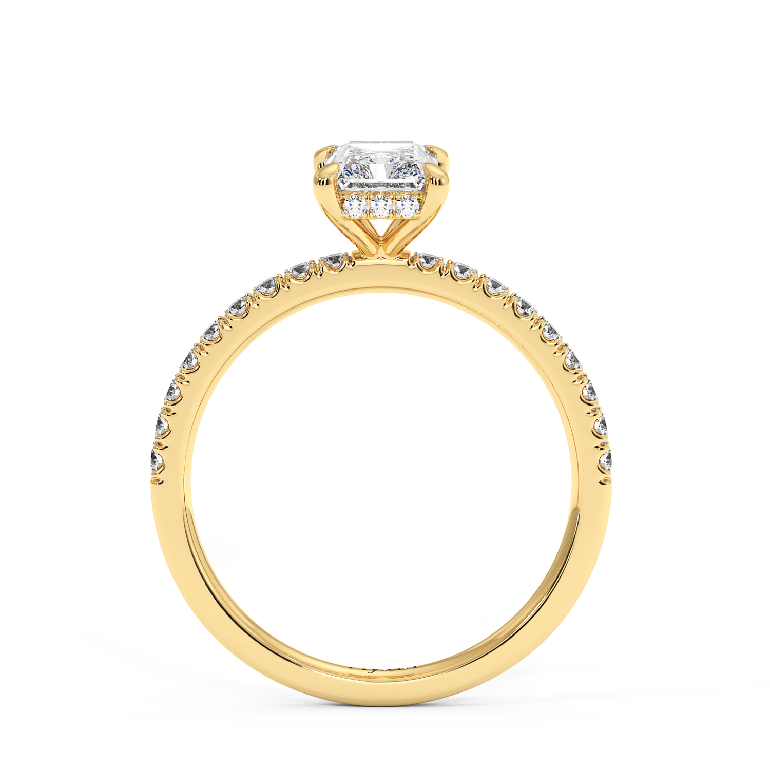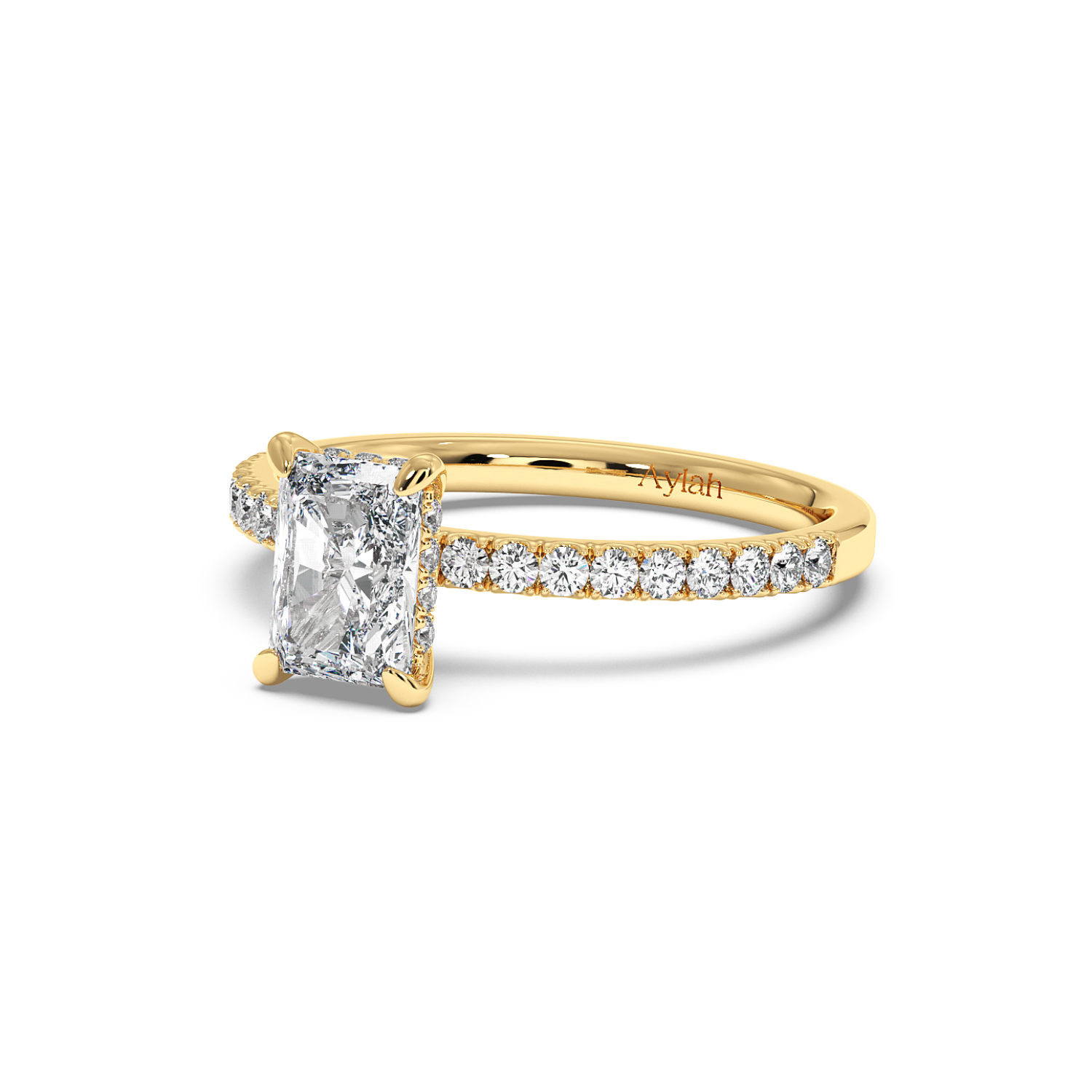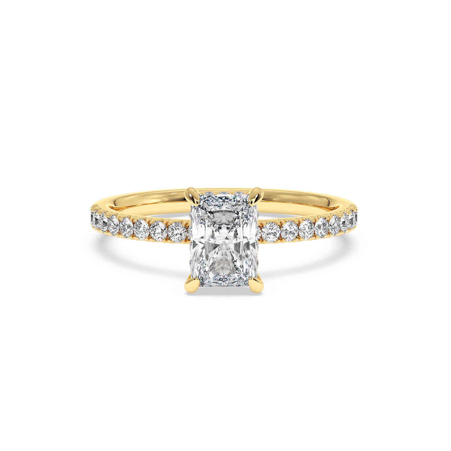 Four Claw Radiant Cut Ring with Hidden Halo & Side Diamonds