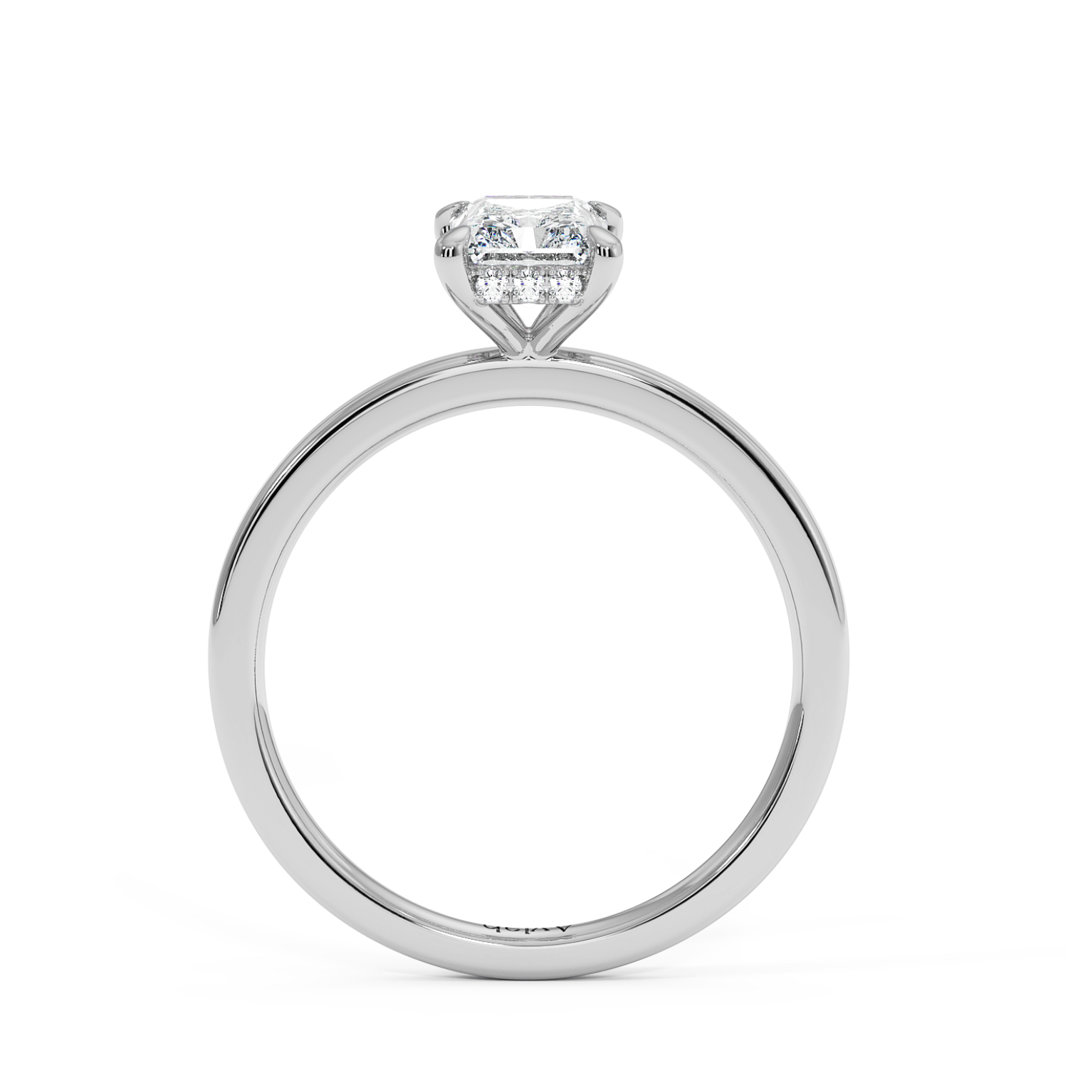 Four Claw Radiant Cut Ring with Hidden Halo