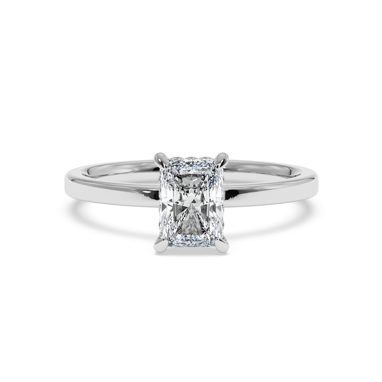 Four Claw Radiant Cut Ring with Hidden Halo