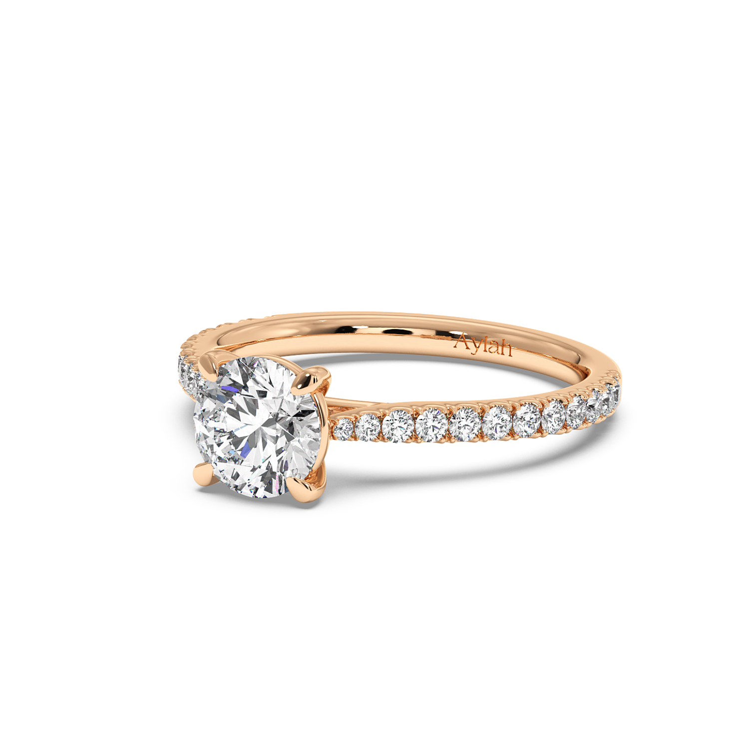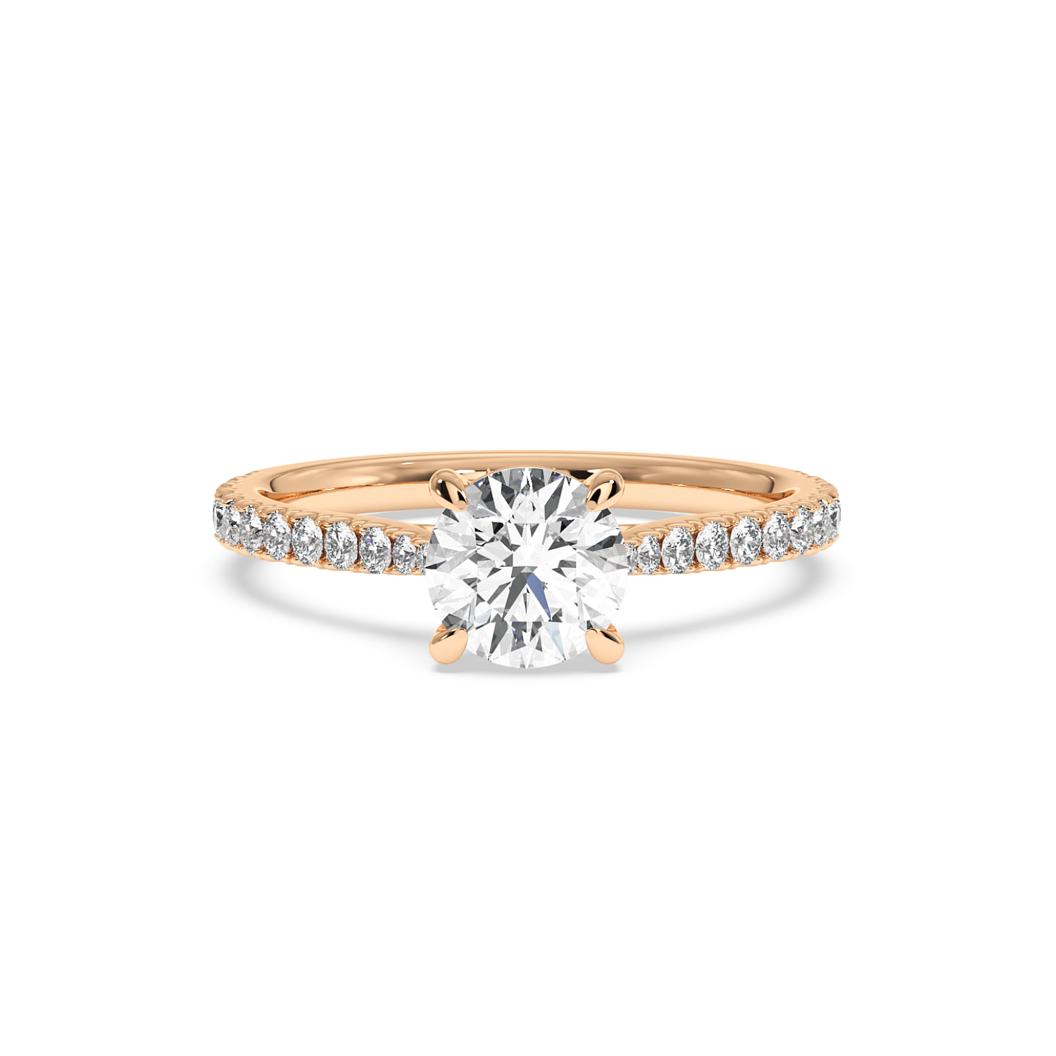 Classic 4 Claw Round Diamond Ring, With 60% Micro Set Shoulder Diamonds (Tapered)