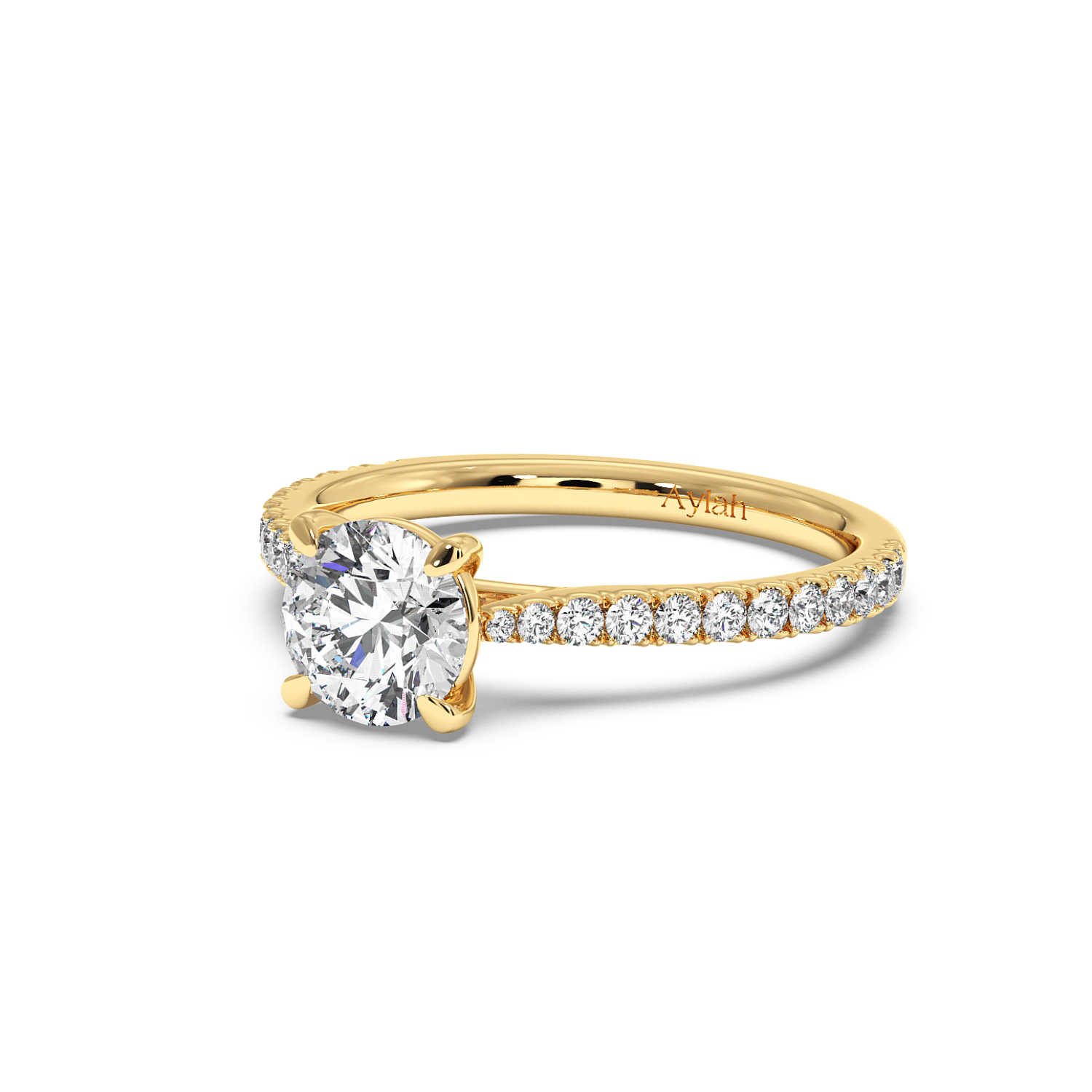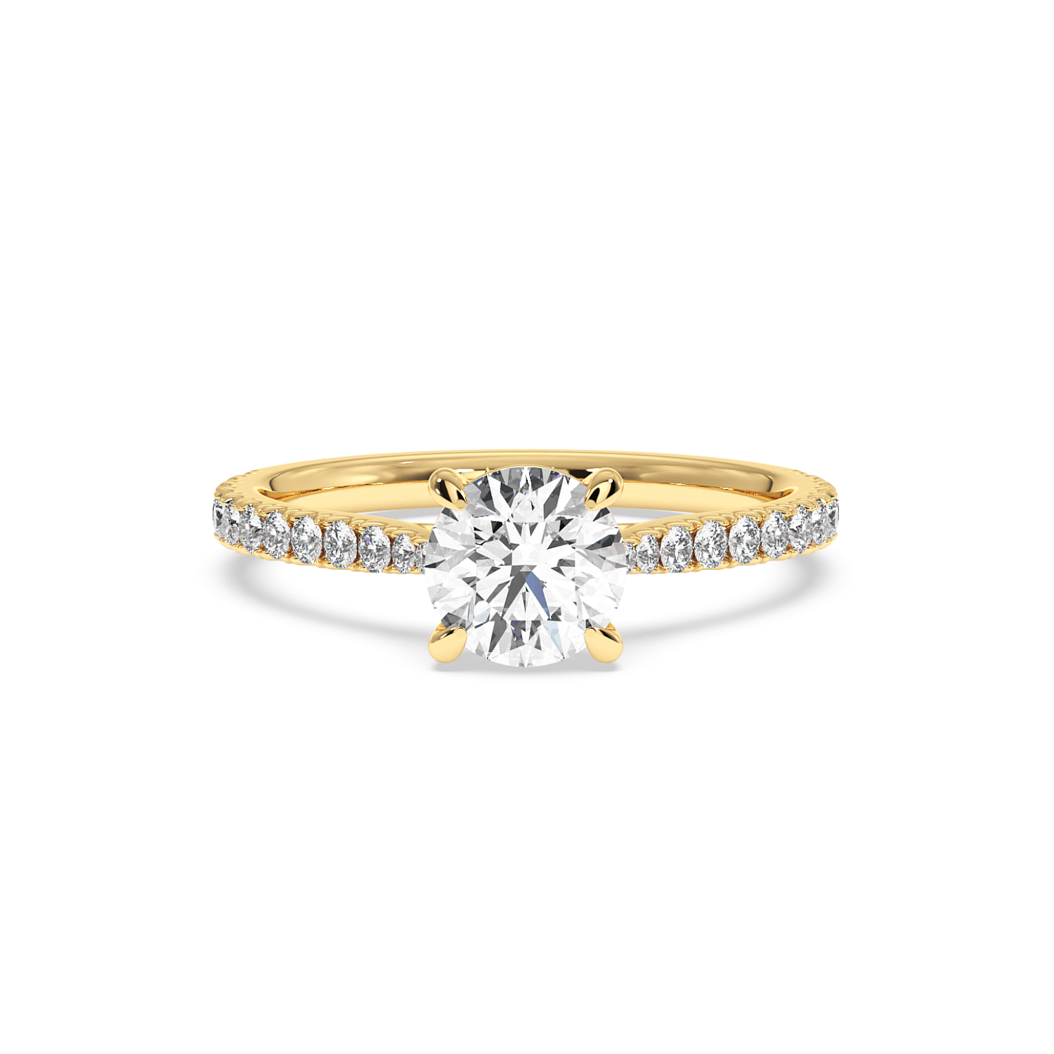 Classic 4 Claw Round Diamond Ring, With 60% Micro Set Shoulder Diamonds (Tapered)