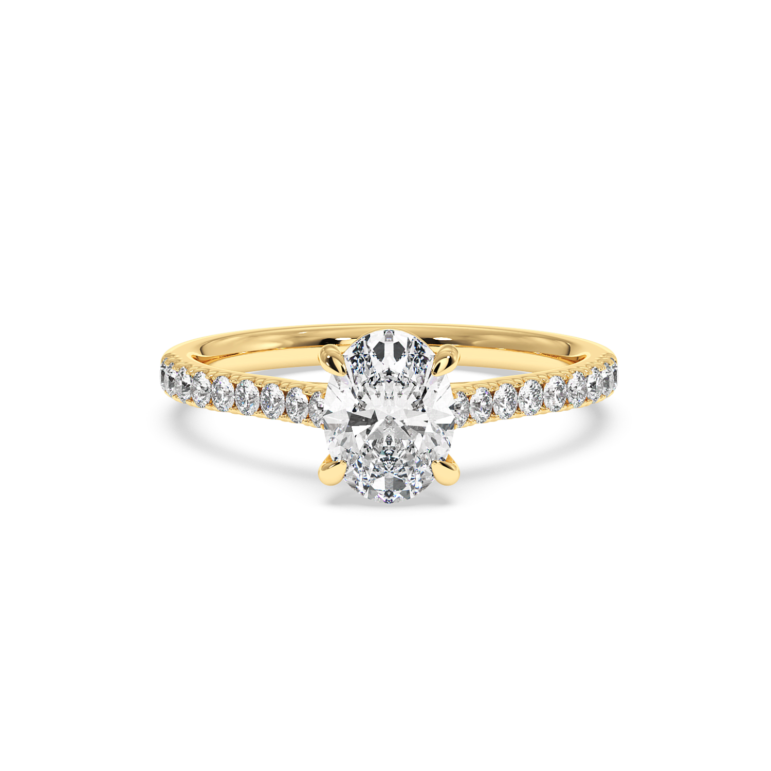 Classic 4 Claw Oval Diamond Ring, With Micro Set Shoulder Diamonds Halfway (Uniform Width)