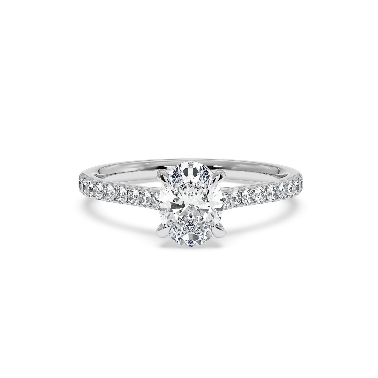 Classic 4 Claw Oval Diamond Ring, With Micro Set Shoulder Diamonds Halfway (Uniform Width)