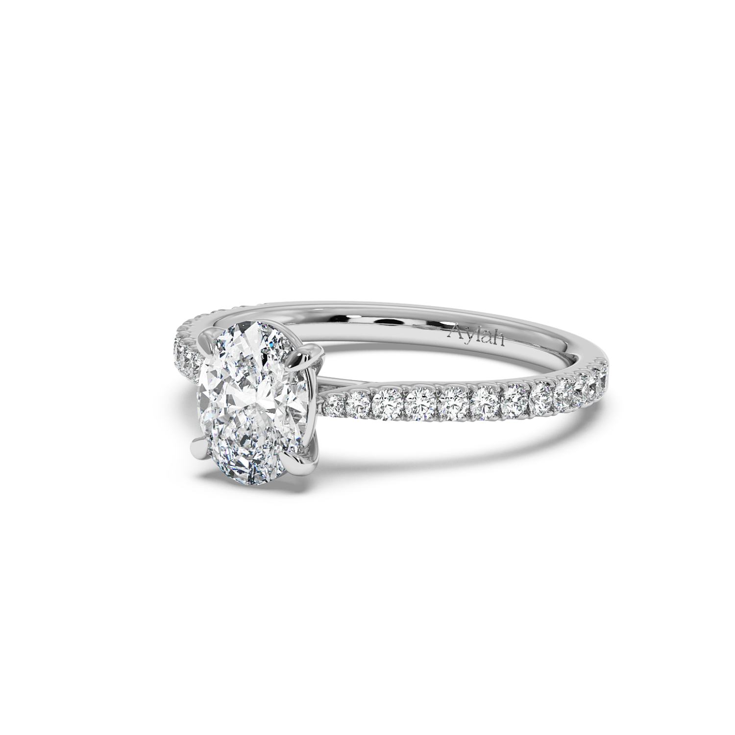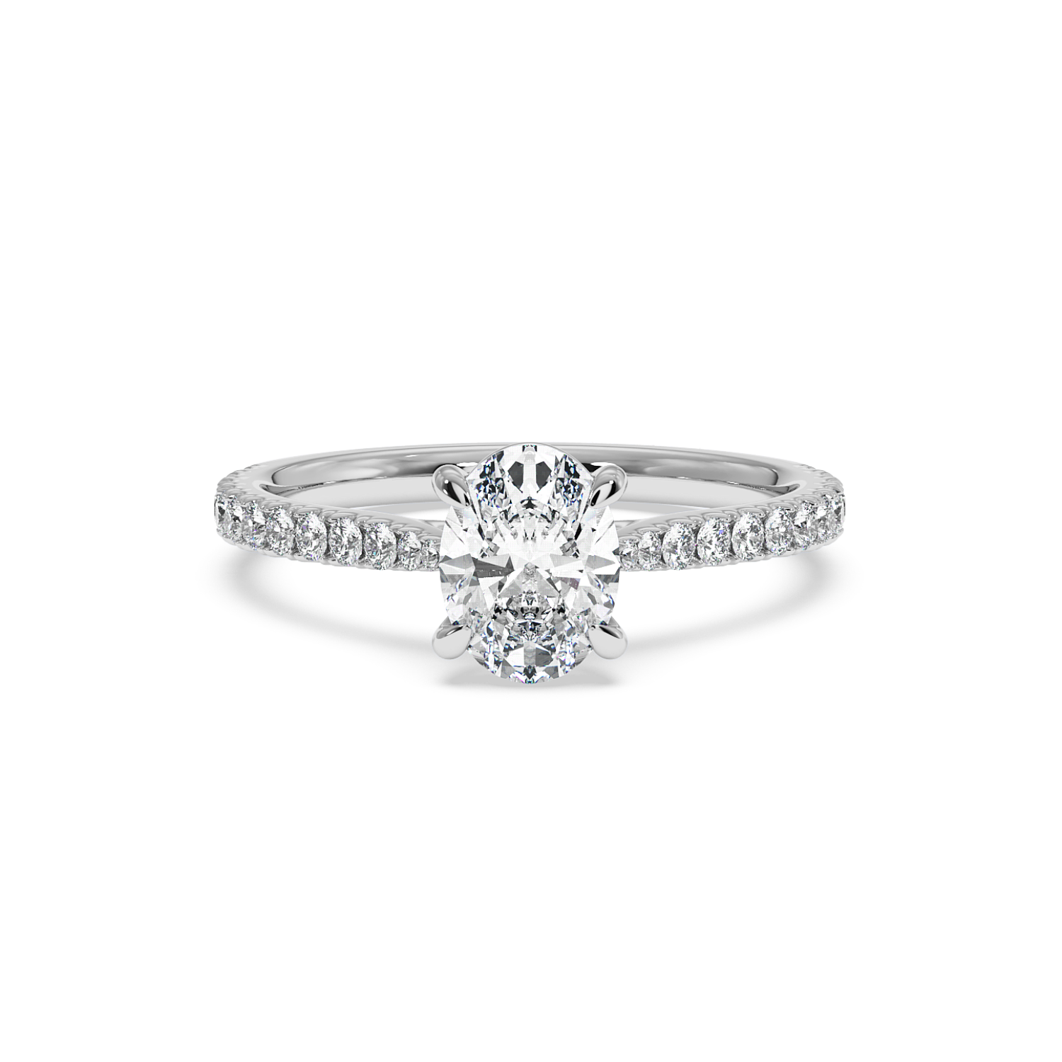 Classic 4 Claw Oval Diamond Ring, With 60% Micro Set Shoulder Diamonds (Tapered)