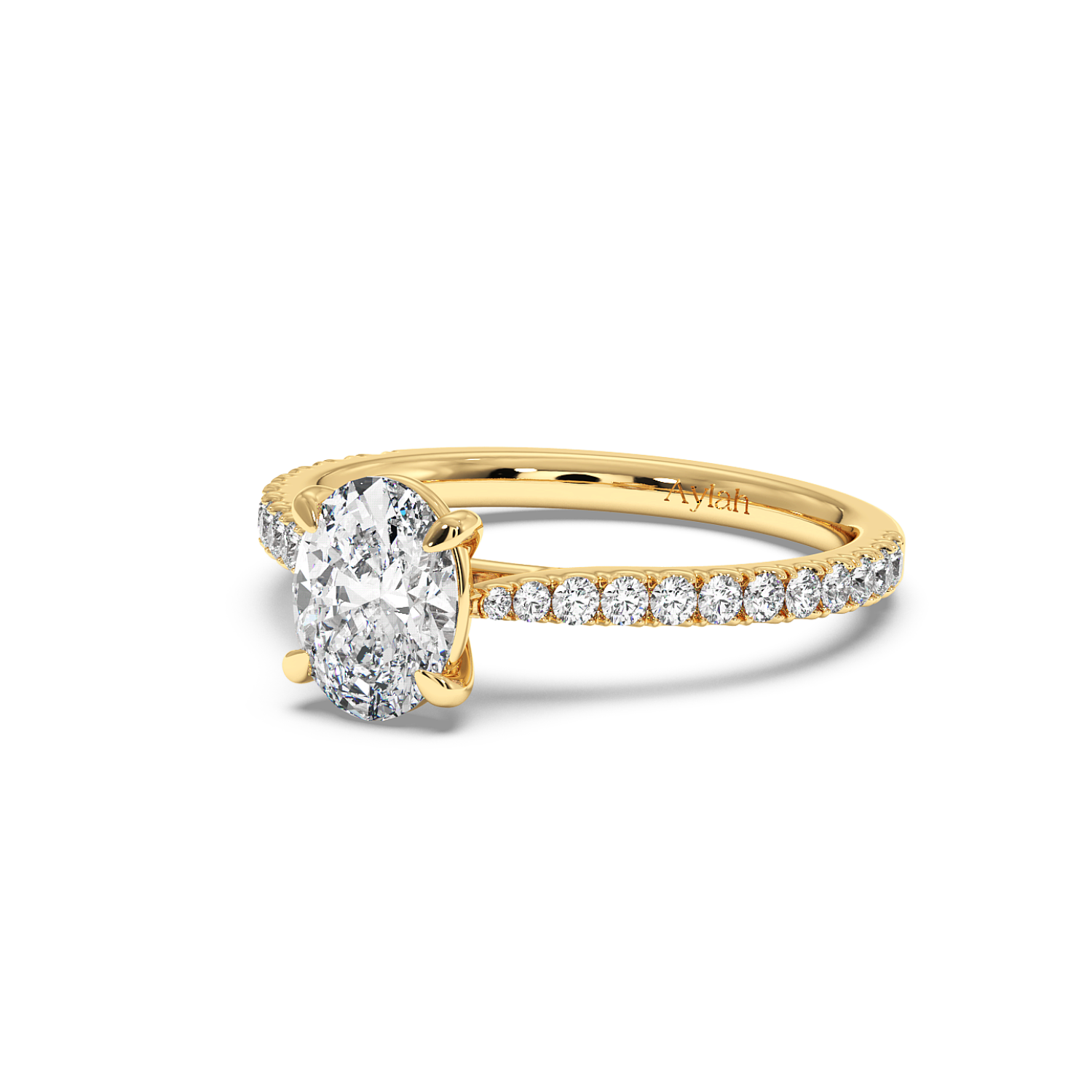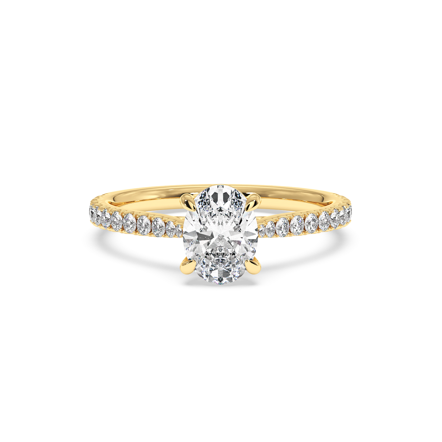Classic 4 Claw Oval Diamond Ring, With 60% Micro Set Shoulder Diamonds (Tapered)