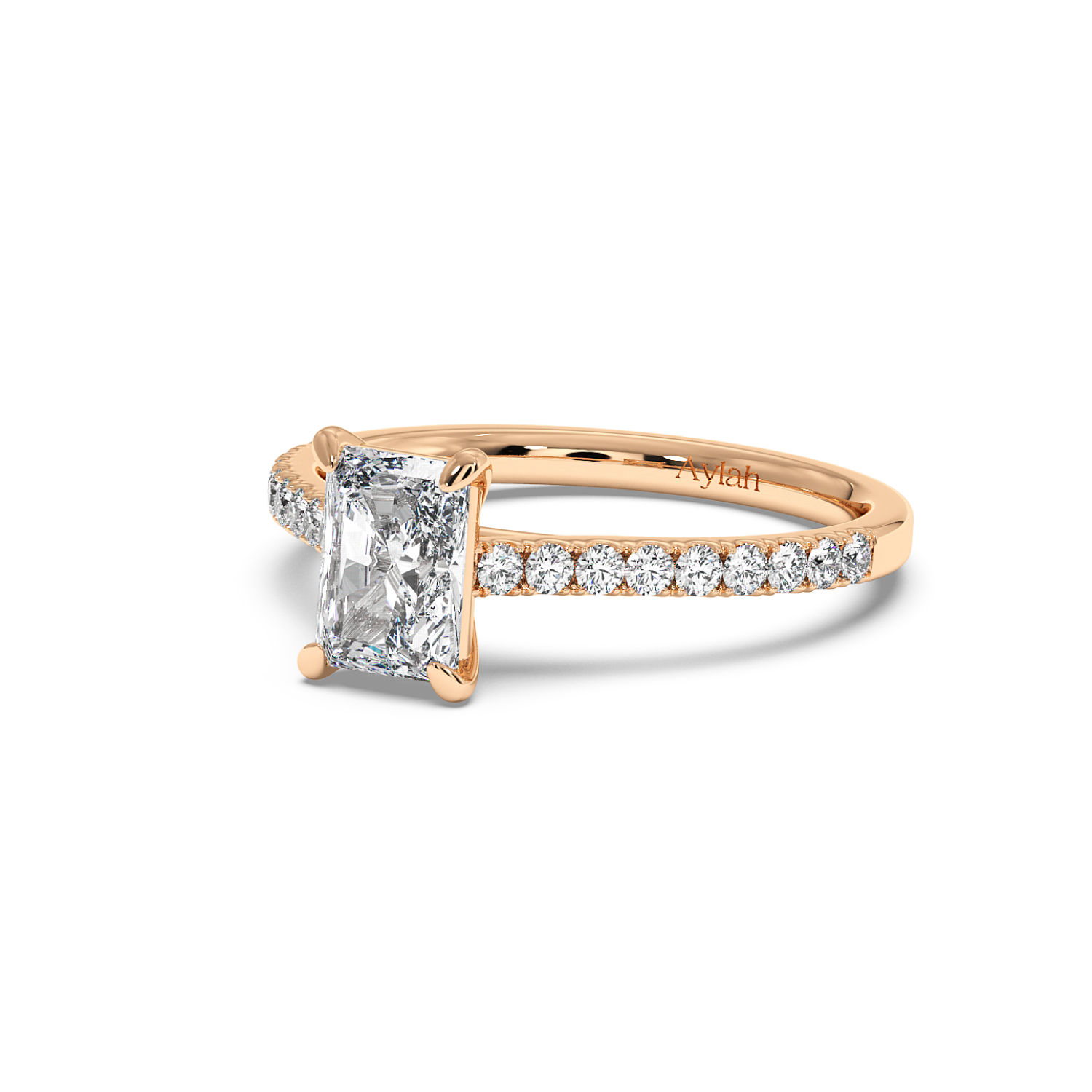 Classic 4 Claw Radiant Diamond Ring, With Micro Set Shoulder Diamonds Halfway (Uniform Width)