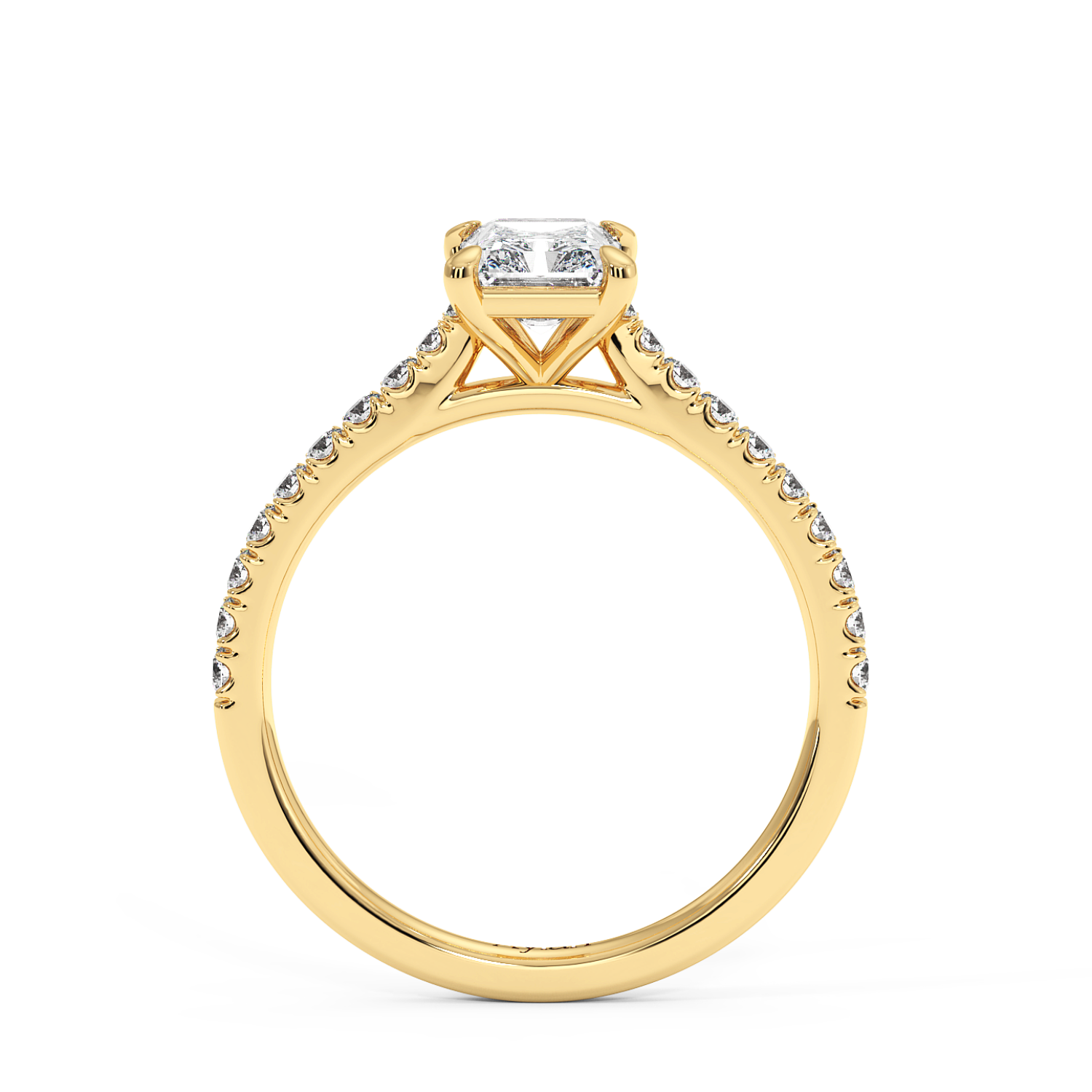Classic 4 Claw Radiant Diamond Ring, With Micro Set Shoulder Diamonds Halfway (Tapered Width)