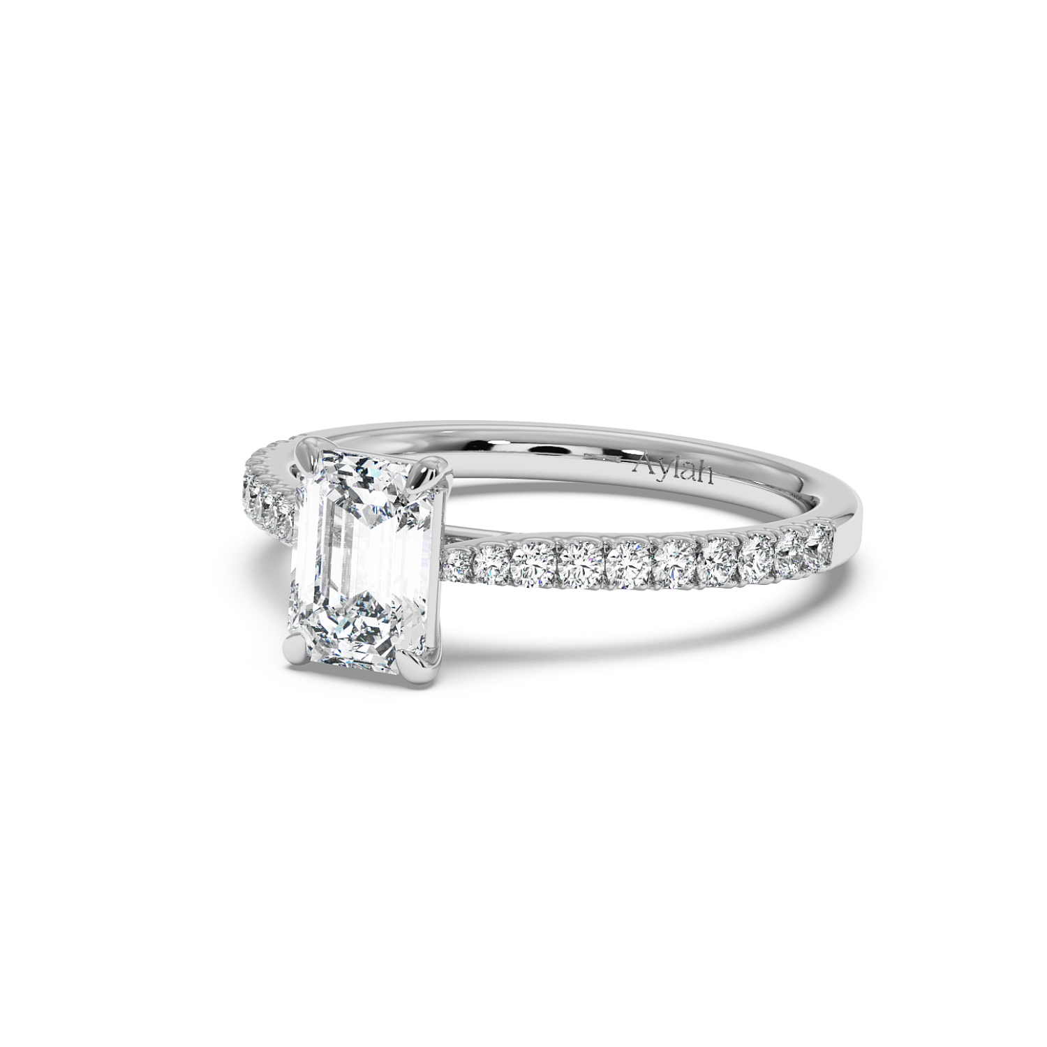 Classic 4 Claw Emerald Diamond Ring, With Micro Set Shoulder Diamonds Halfway (Tapered Width)