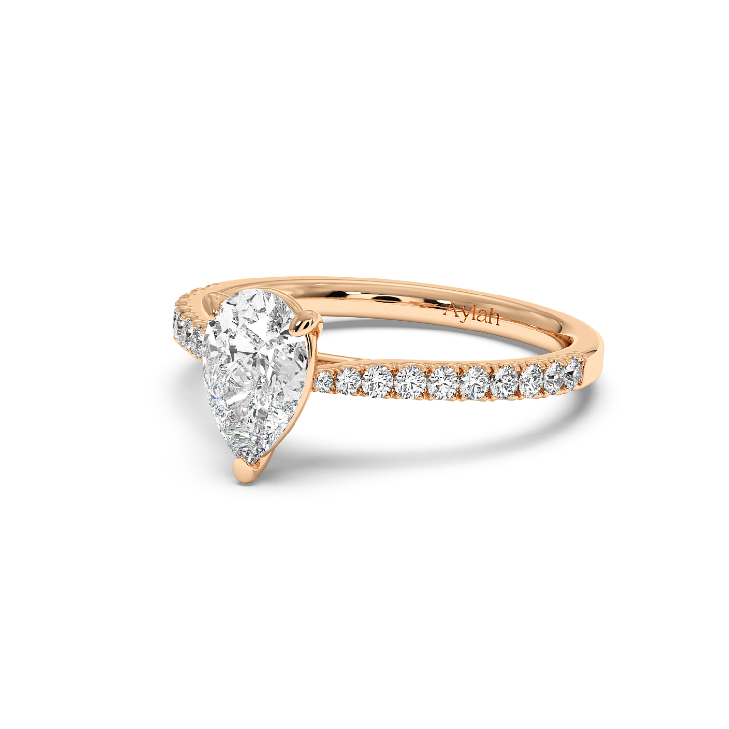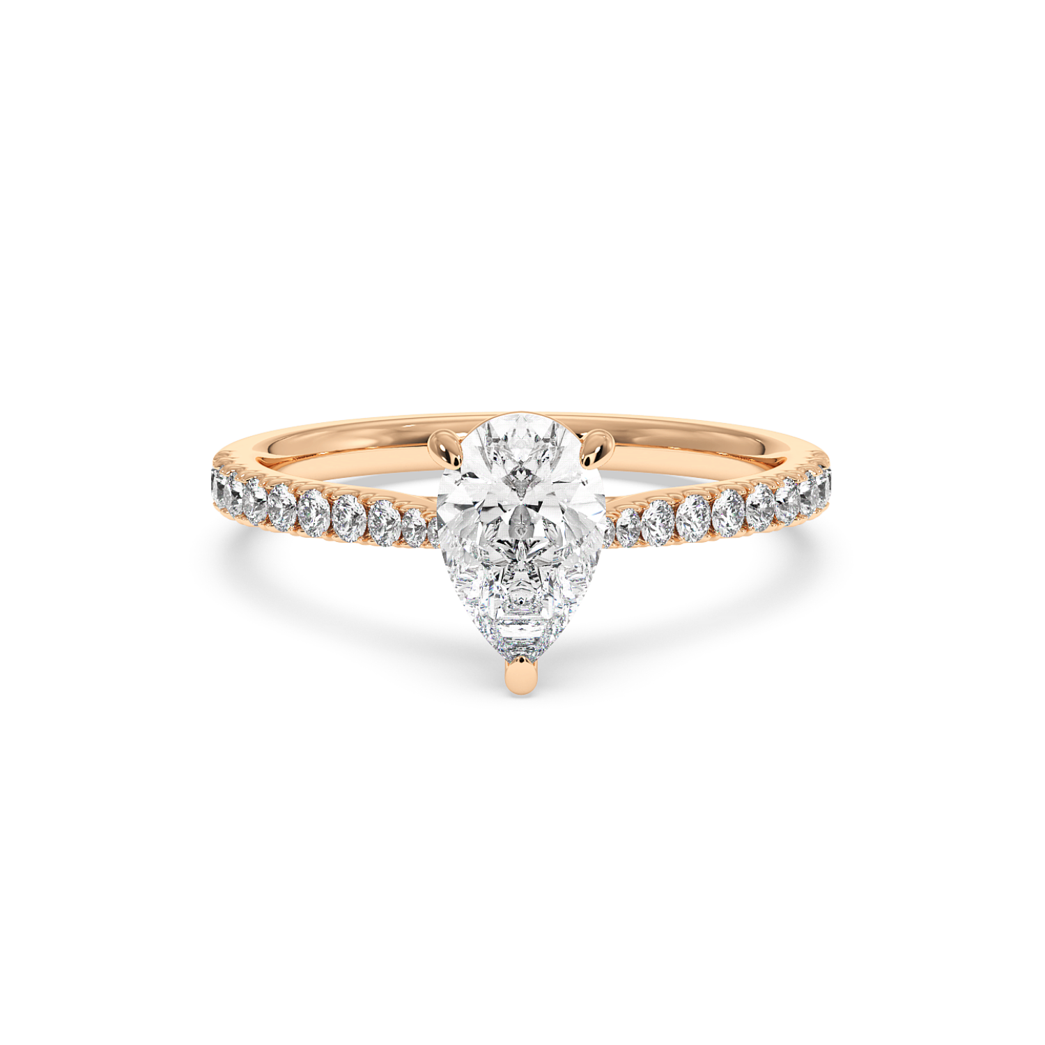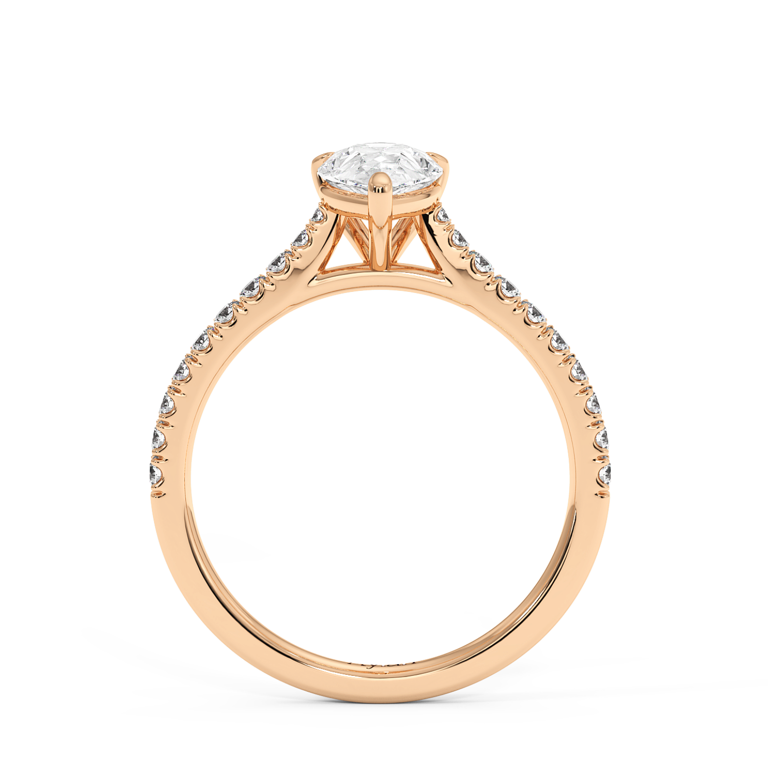 Classic 4 Claw Pear Diamond Ring, With Micro Set Shoulder Diamonds Halfway (Tapered Width)