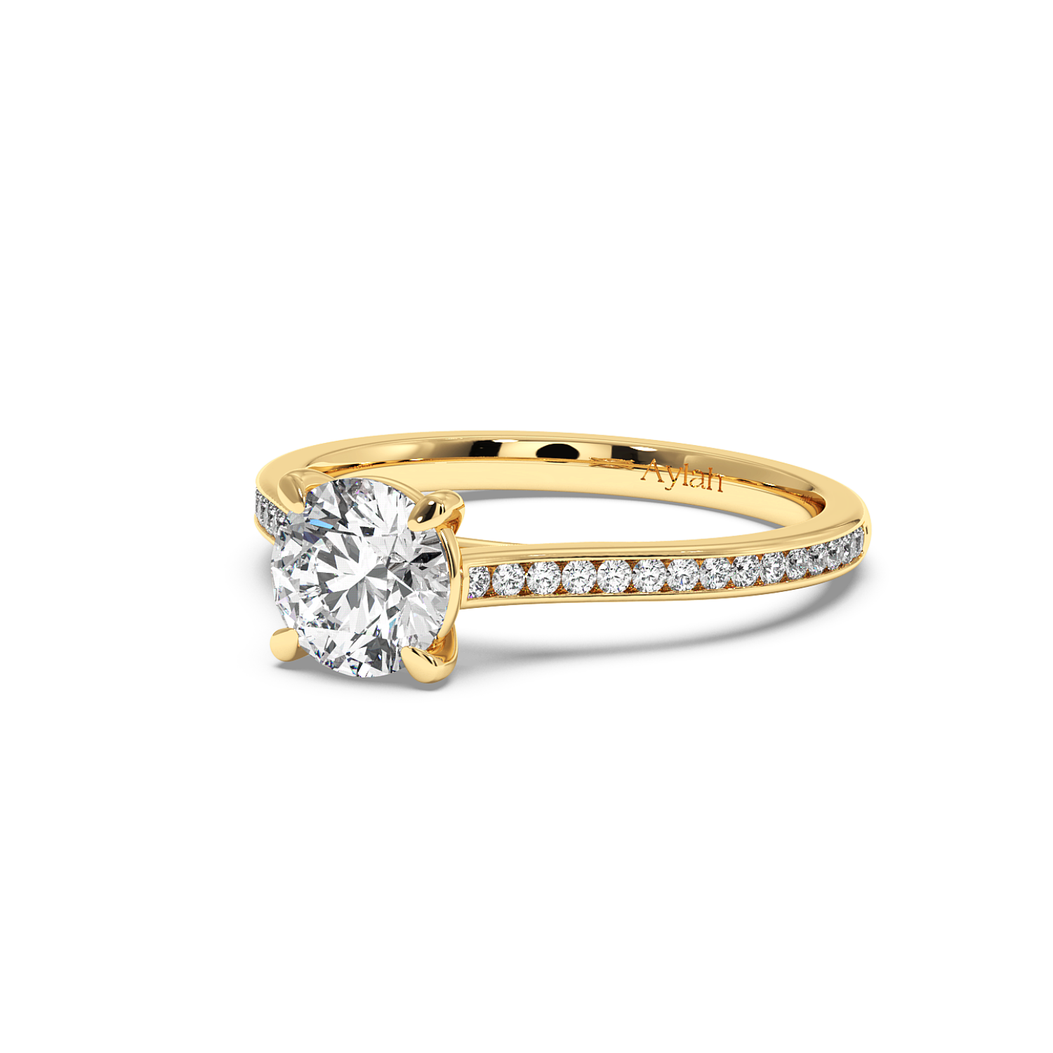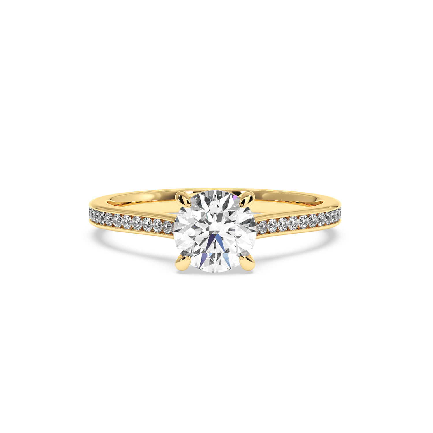 4 Claw Round Diamond Ring, With 60% Channel Set Shoulder Diamonds (Uniform Width)