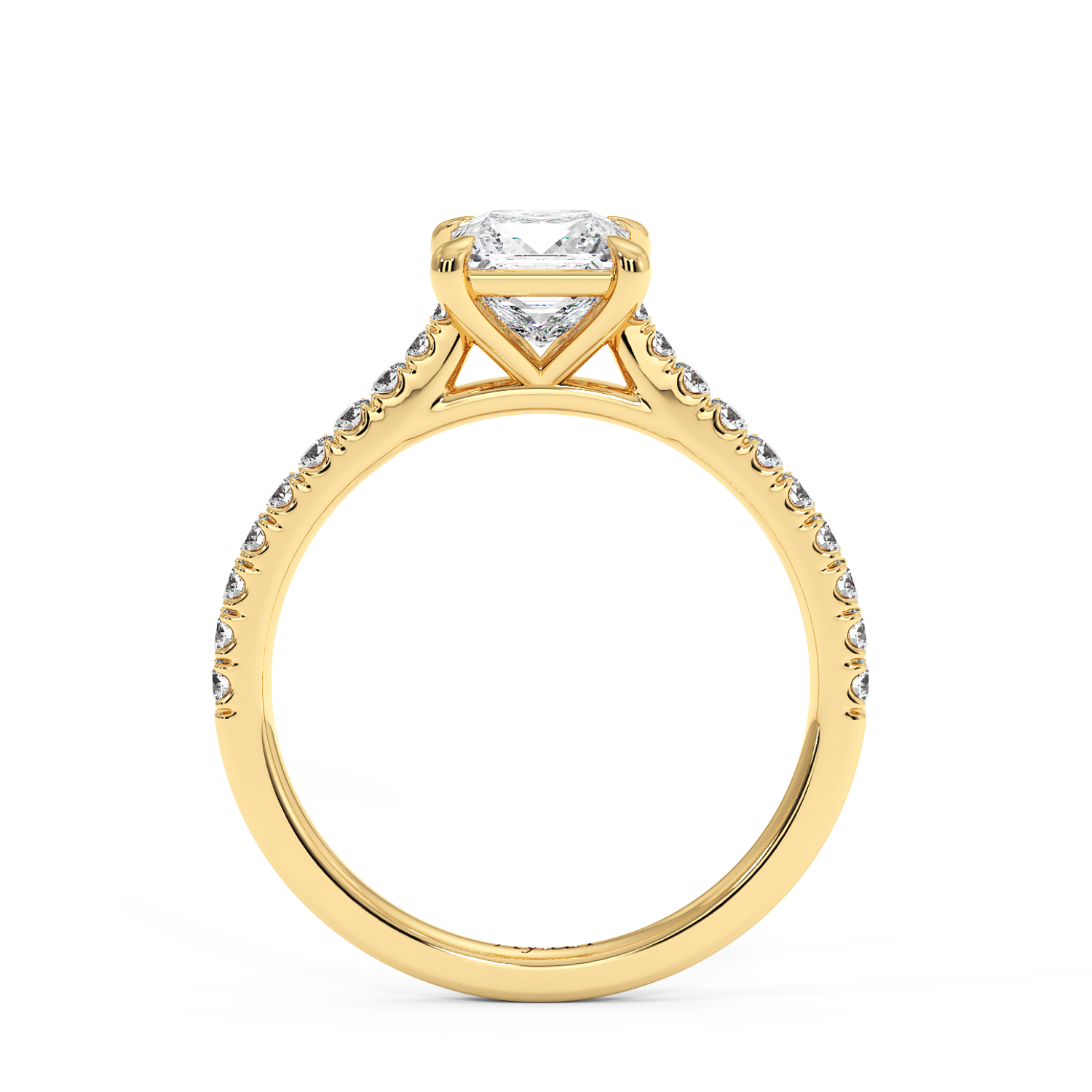 Classic 4 Claw Princess Diamond Ring, With Micro Set Shoulder Diamonds Halfway (Tapered Width)