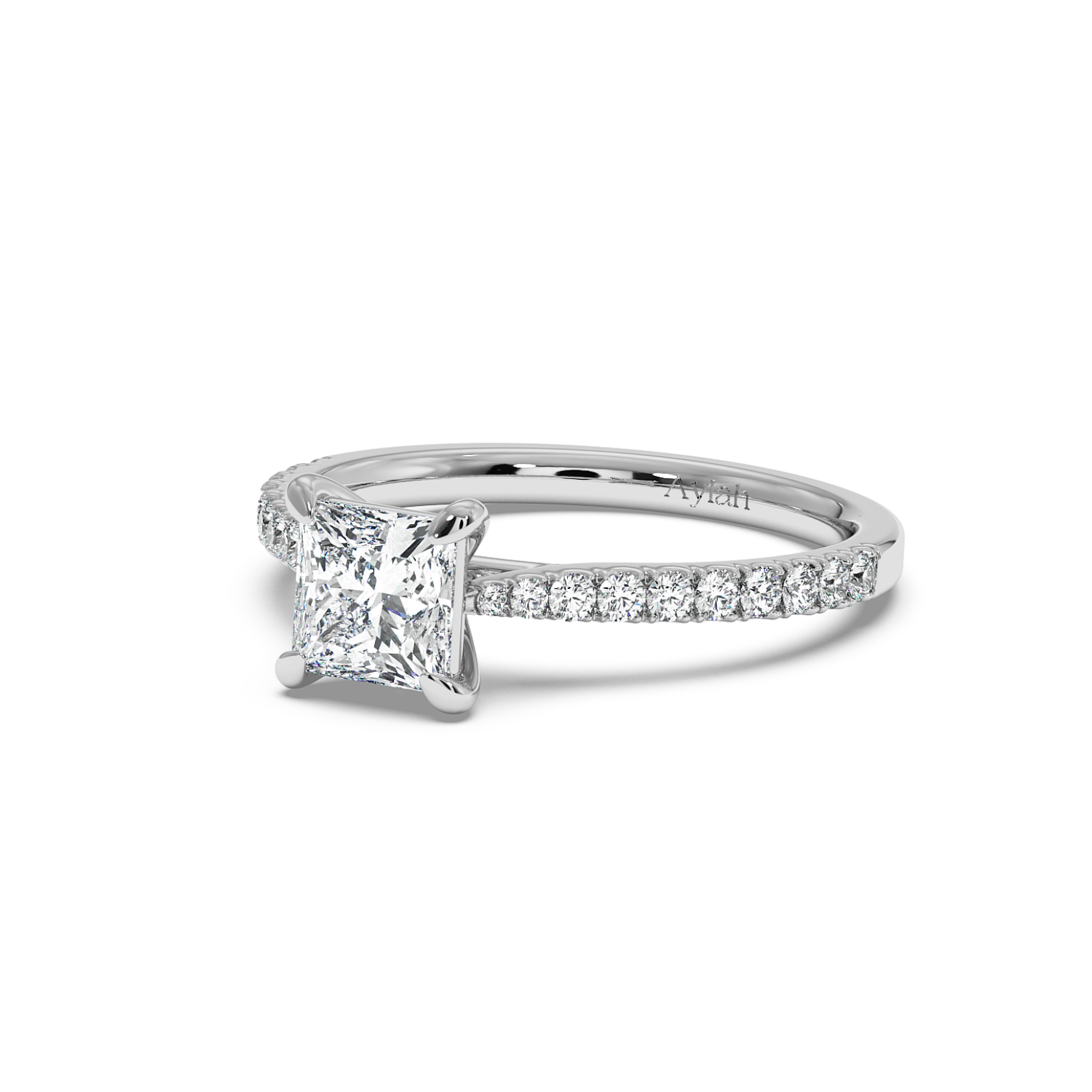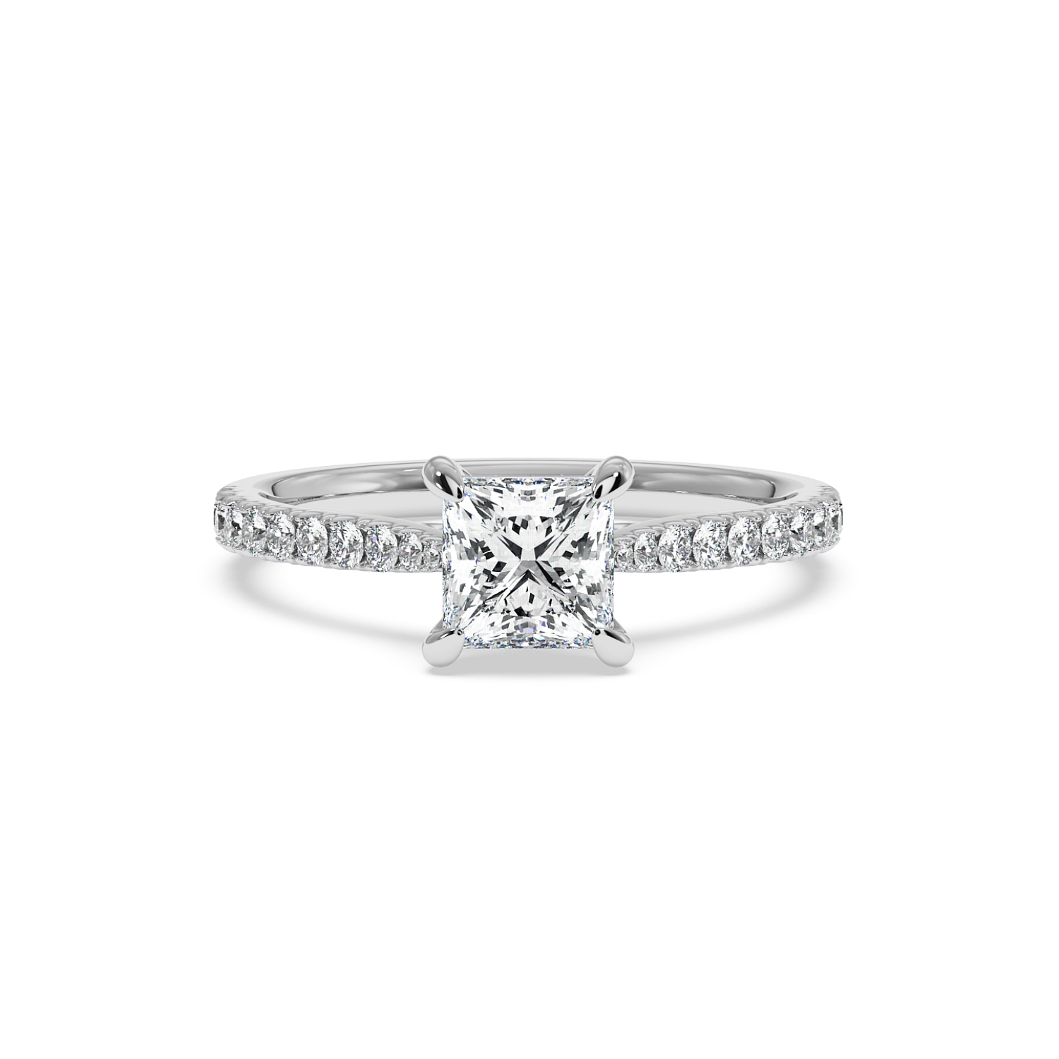 Classic 4 Claw Princess Diamond Ring, With Micro Set Shoulder Diamonds Halfway (Tapered Width)