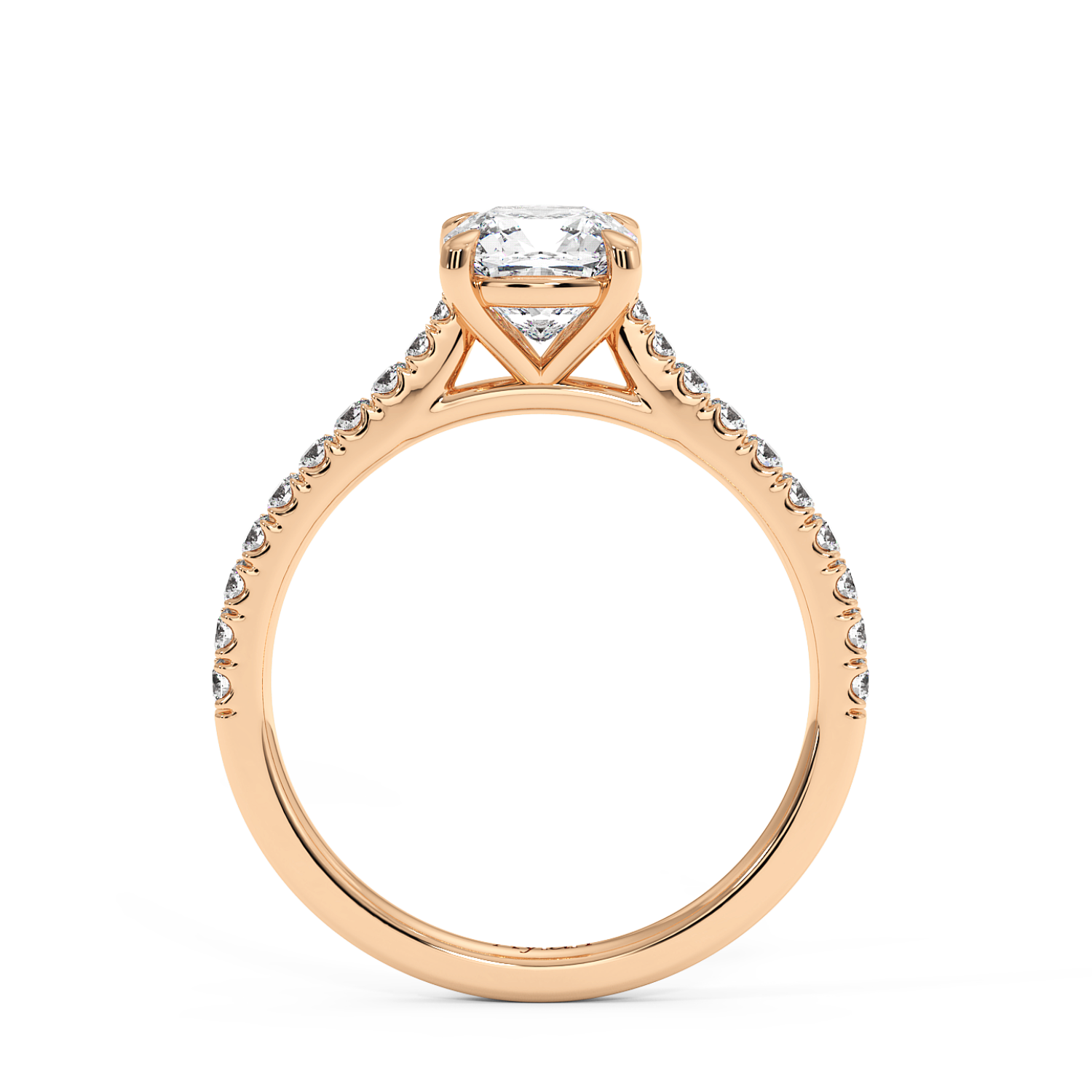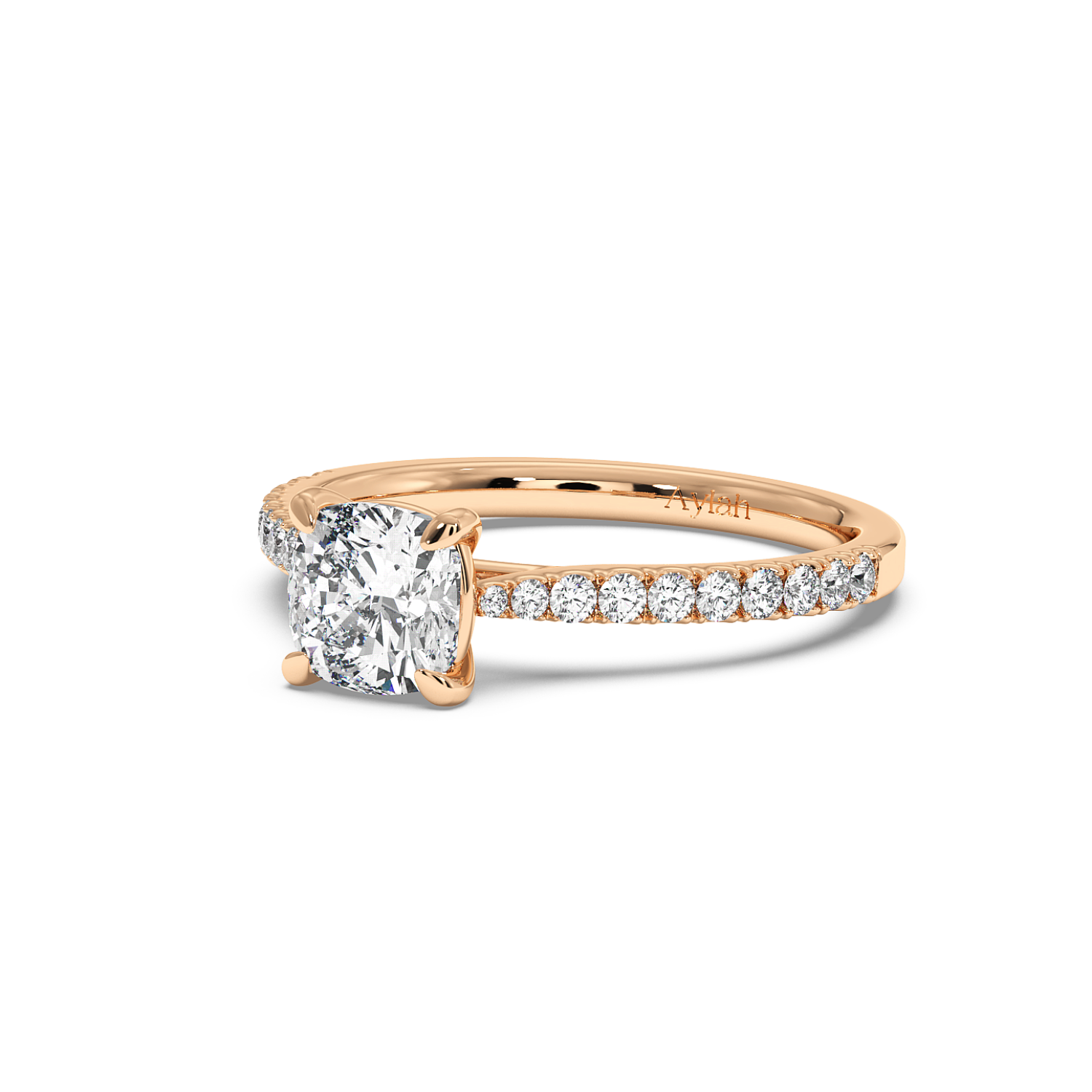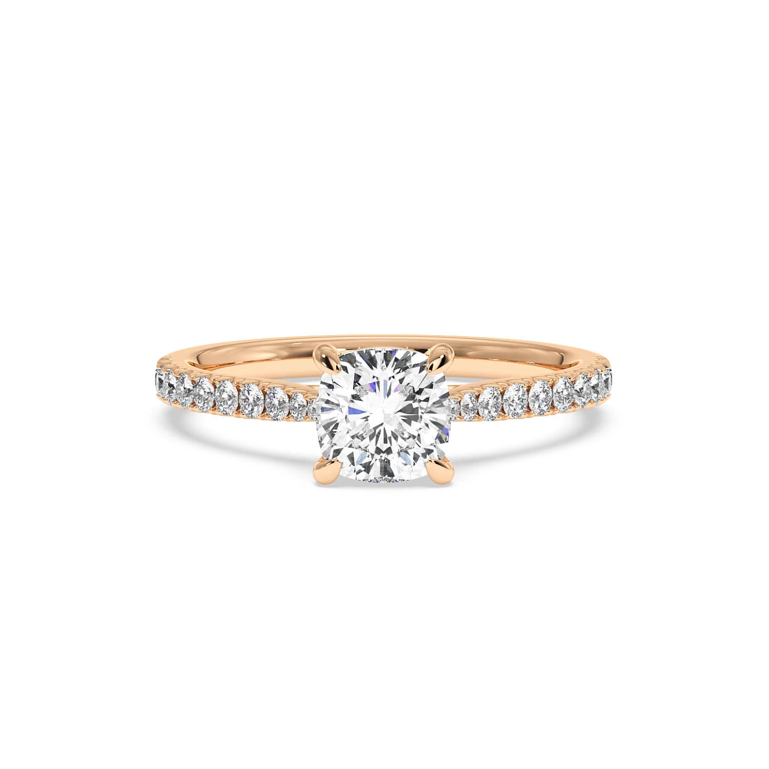 Classic 4 Claw Cushion Diamond Ring, With Micro Set Shoulder Diamonds Halfway (Tapered Width)