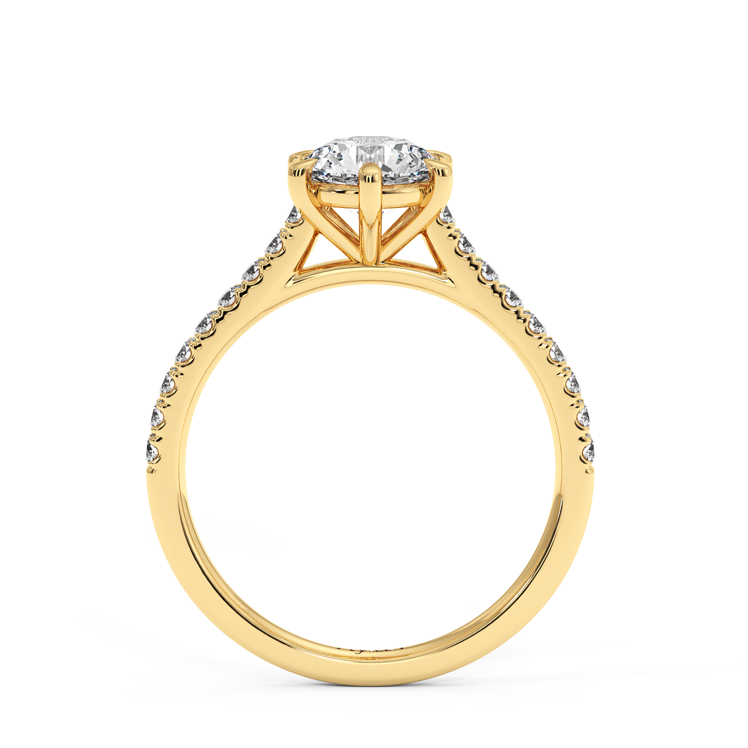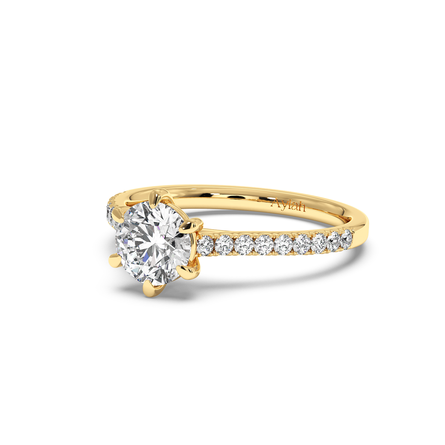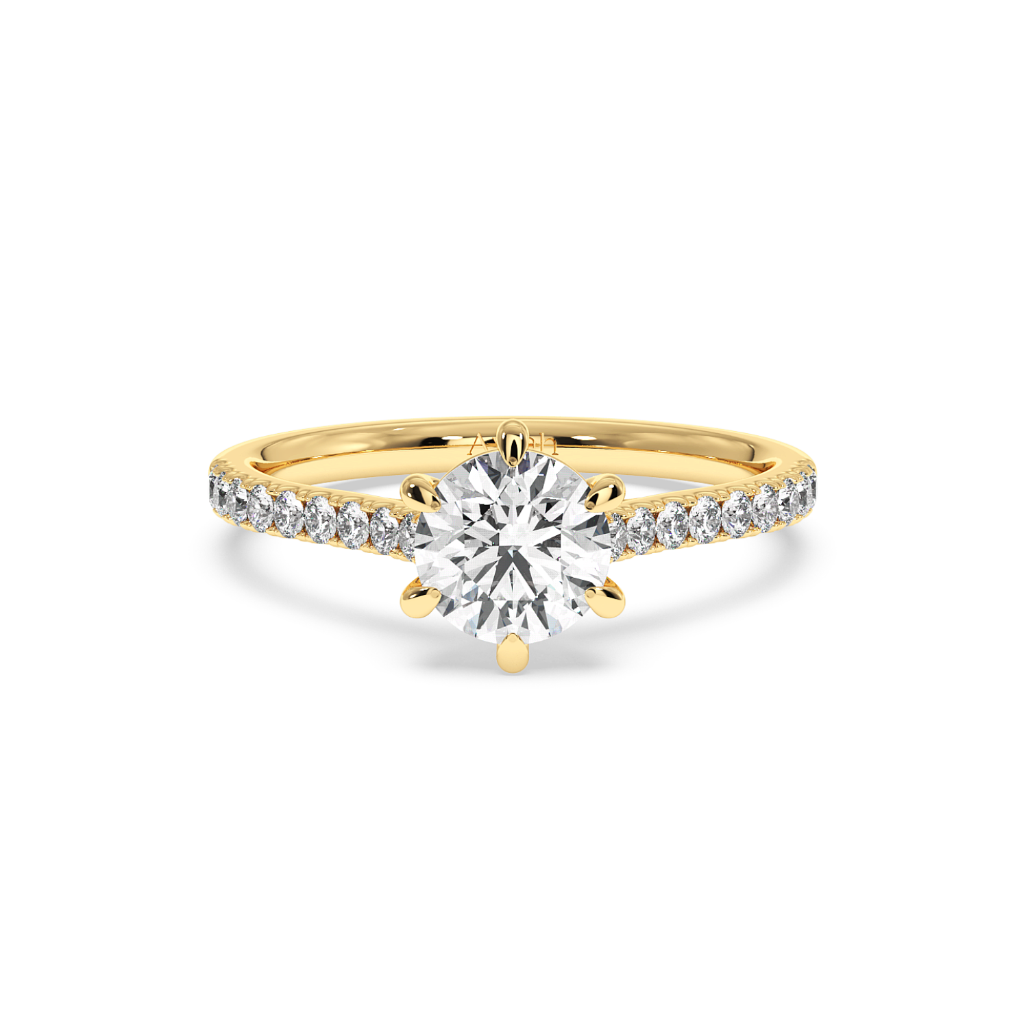 6 Claw Round Diamond Ring, With Micro Set Shoulder Diamonds Halfway (Uniform Width)