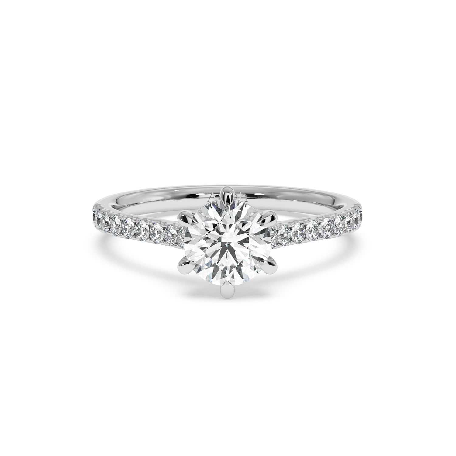 6 Claw Round Diamond Ring, With Micro Set Shoulder Diamonds Halfway (Uniform Width)