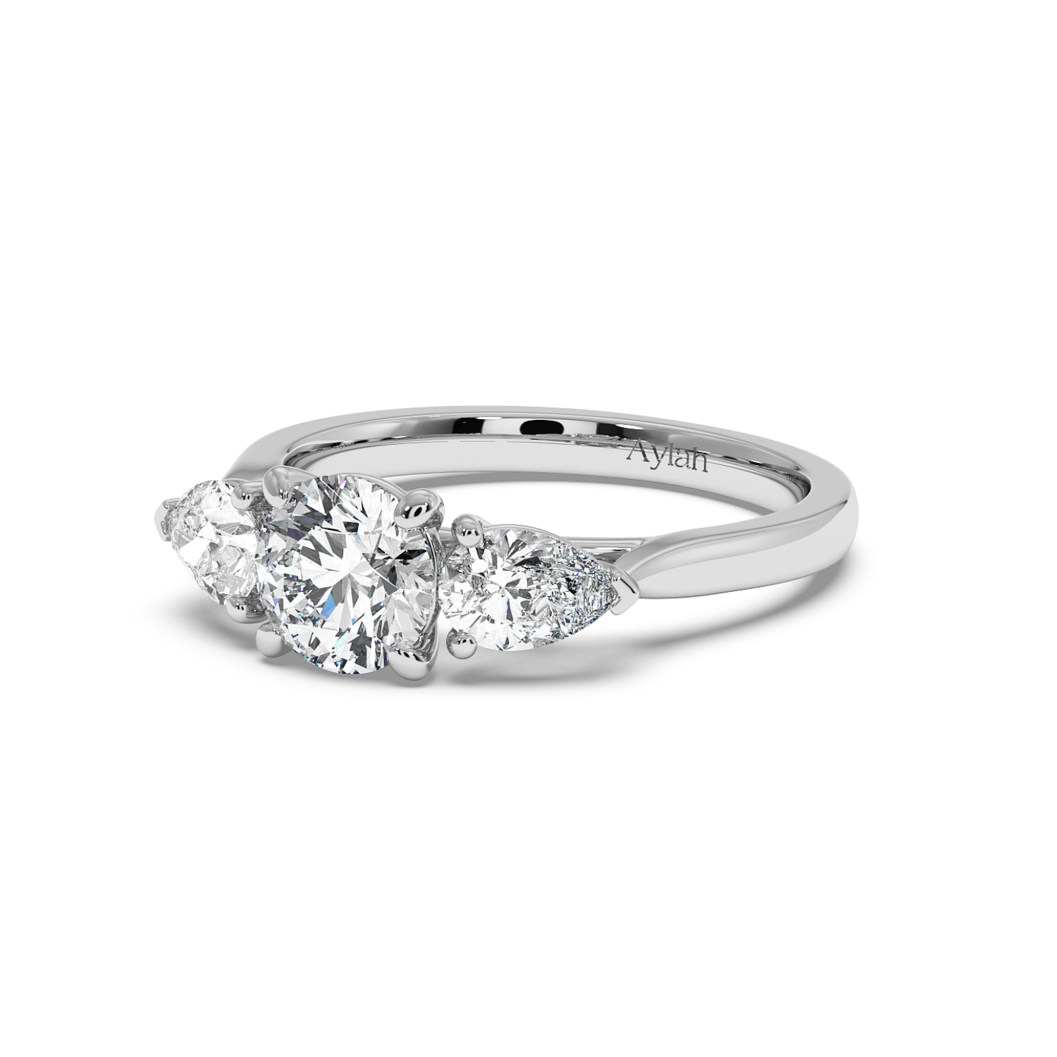 Round Centre & Pear Sides in V-claw basket setting