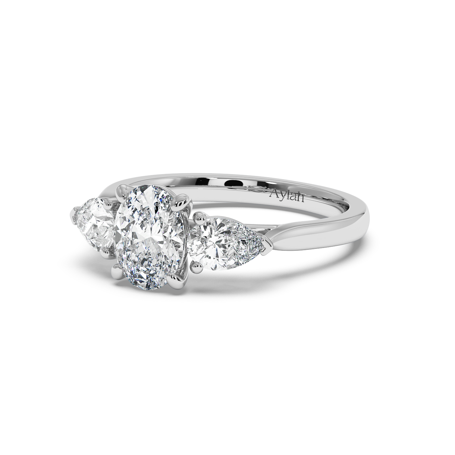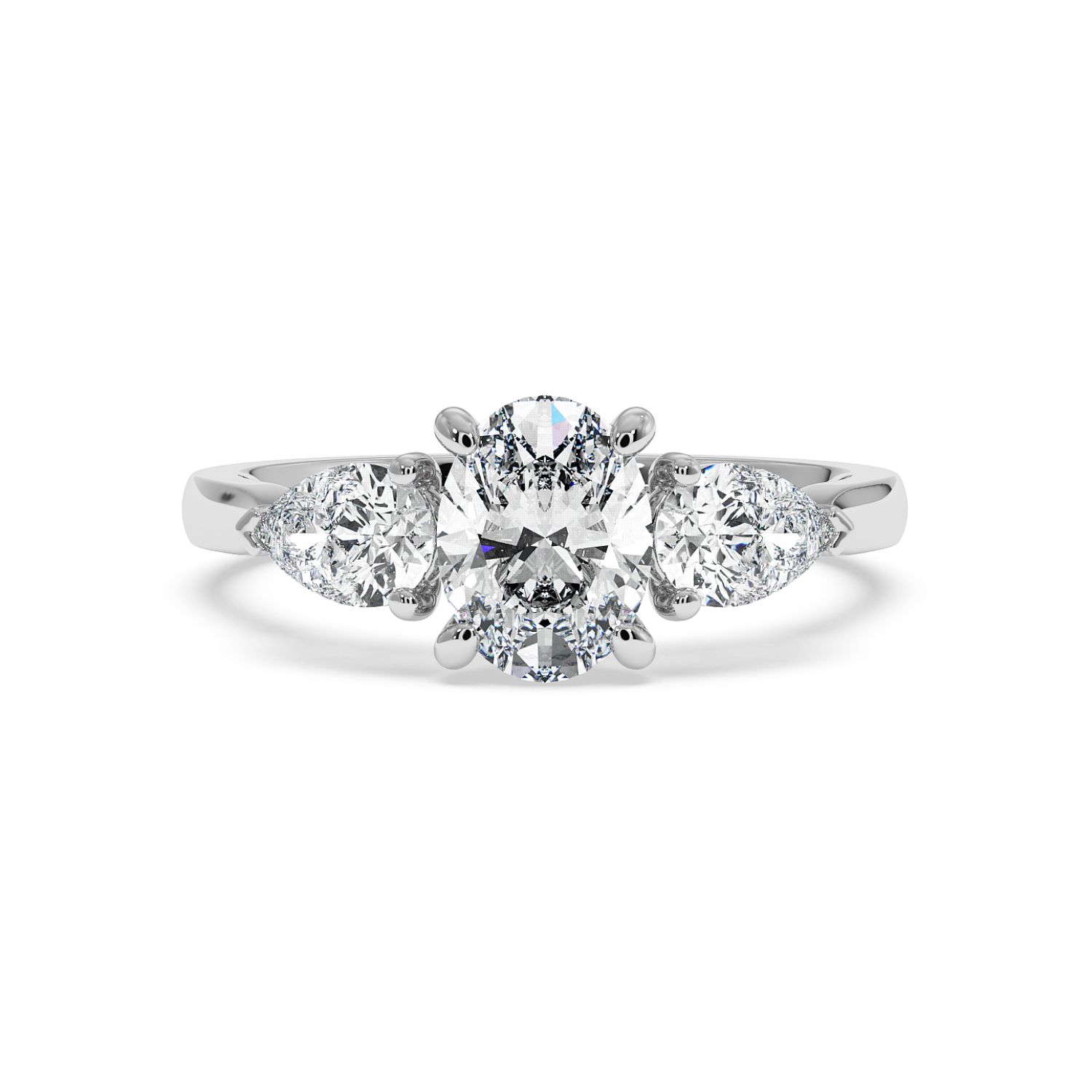 Oval Centre & Pear sides in V-claw basket setting