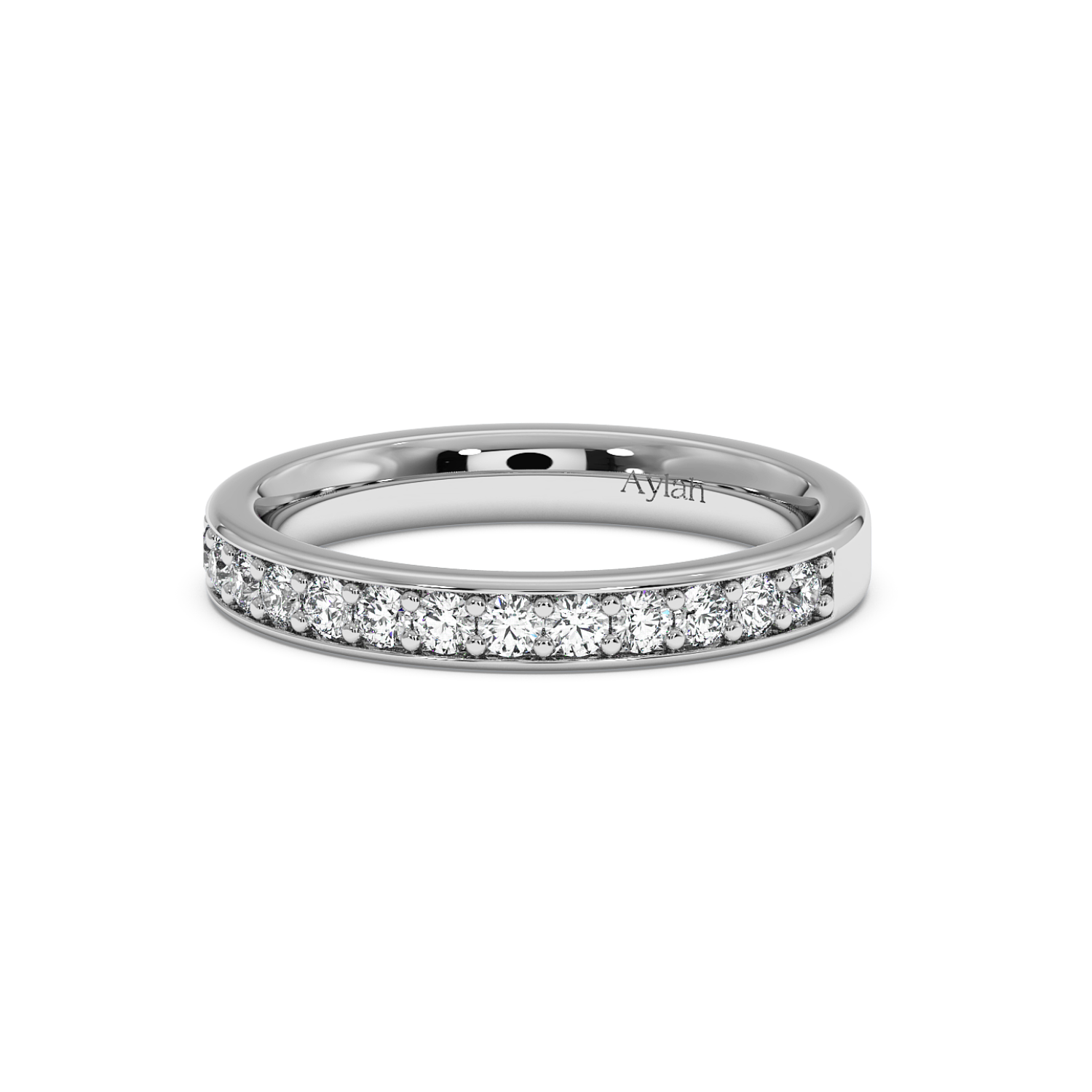 Pave Set Round Cut Diamond Eternity Ring/Wedding Band with Diamonds Halfway 3mm