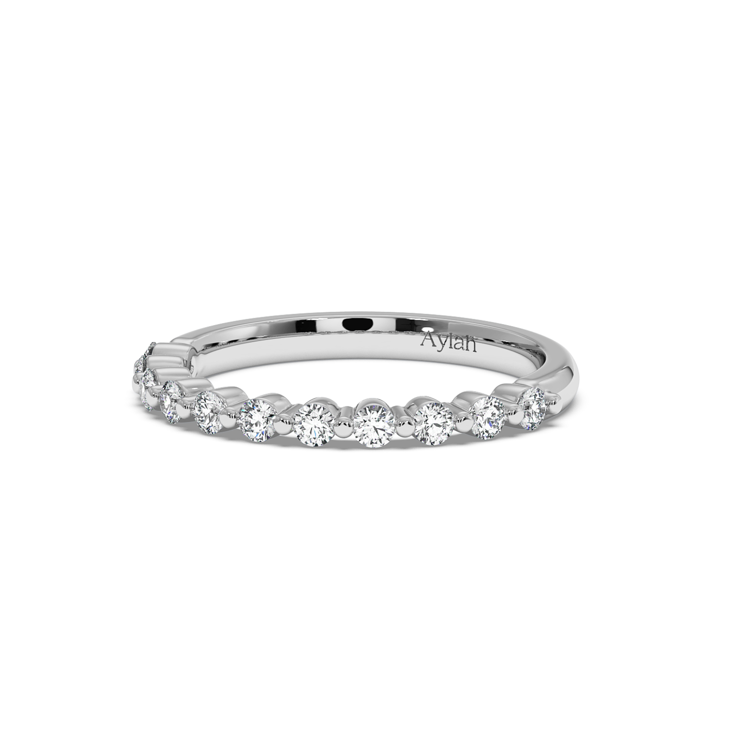 Single Shared Claw Eternity Ring/Wedding Band with Round Cut Diamonds Halfway 1.8mm